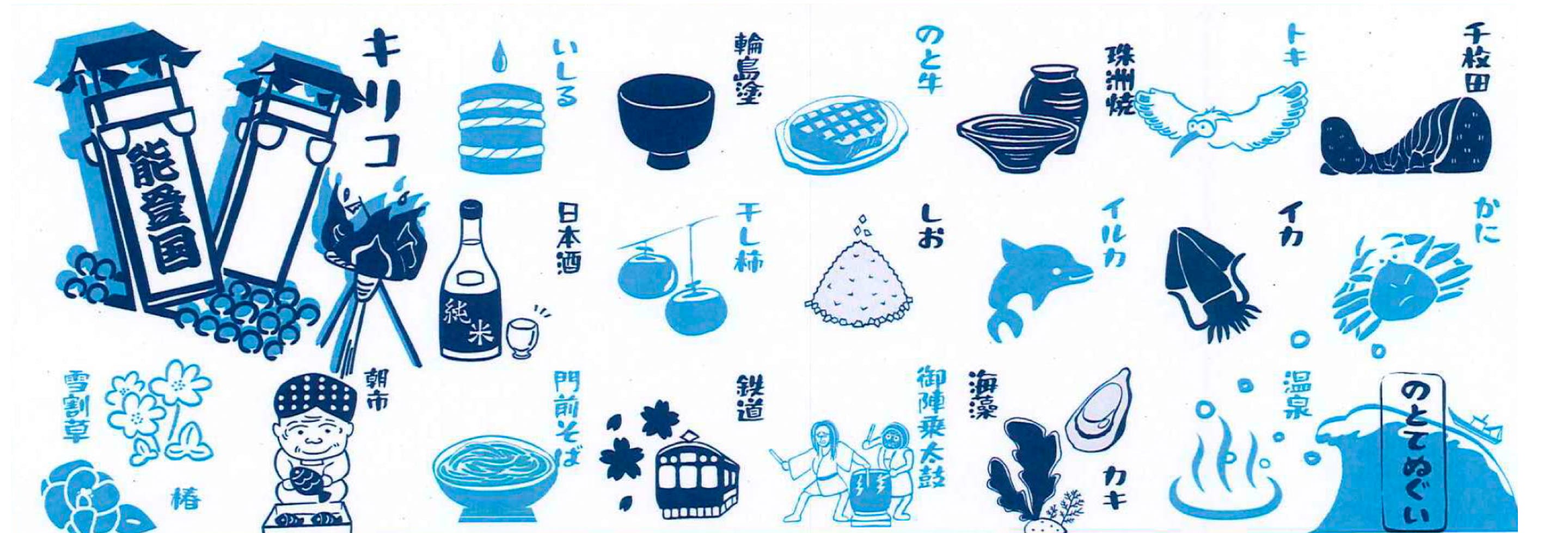 能登の魅力が溢れた、のとてぬぐい。
