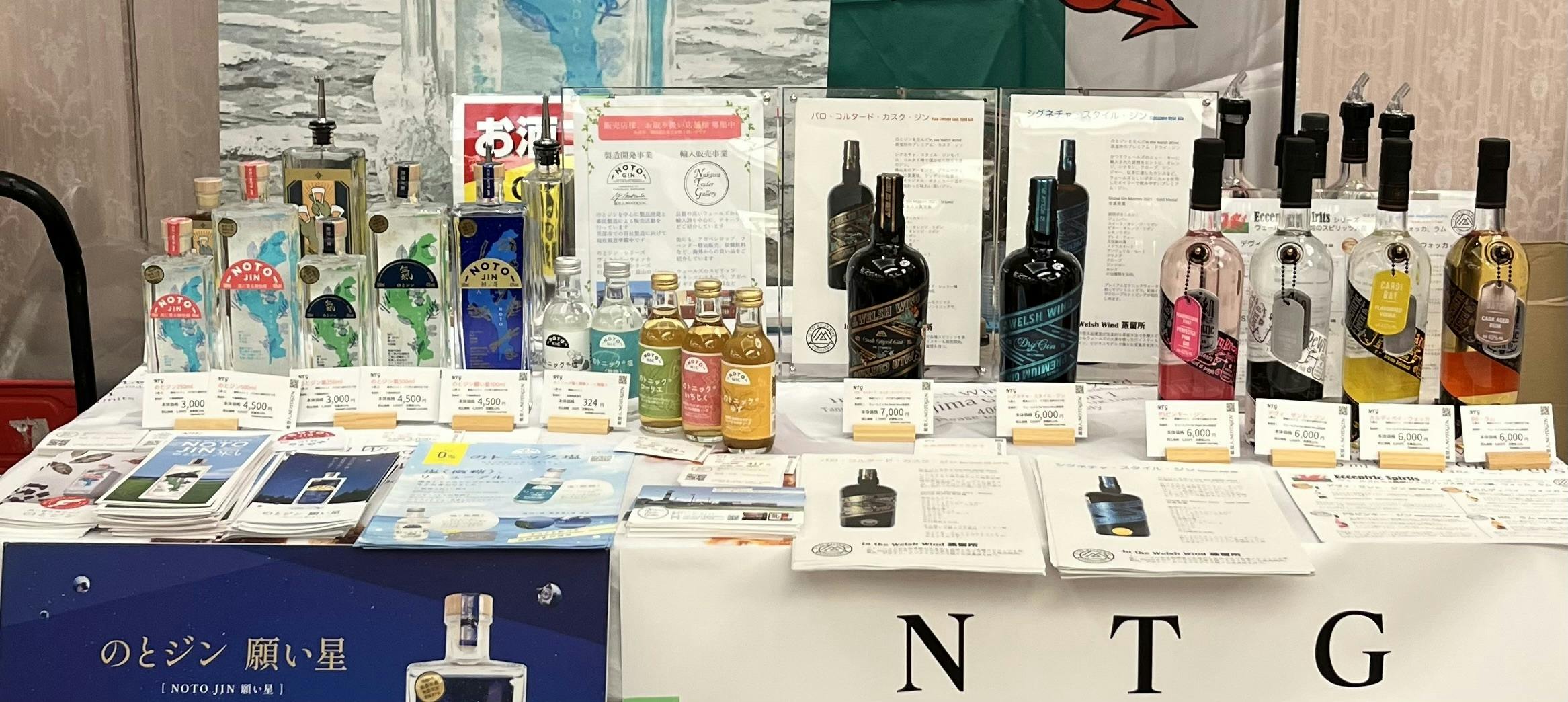 NTGは2021年から「のとジン」のプロデュースと販売を開始しました。活動を続けていくうちに、様々な出会いが生まれ、自然と活動が広がり、輸入酒の取り扱いや小売販売、その他海外製品の小売販売も手がけるようになりました。