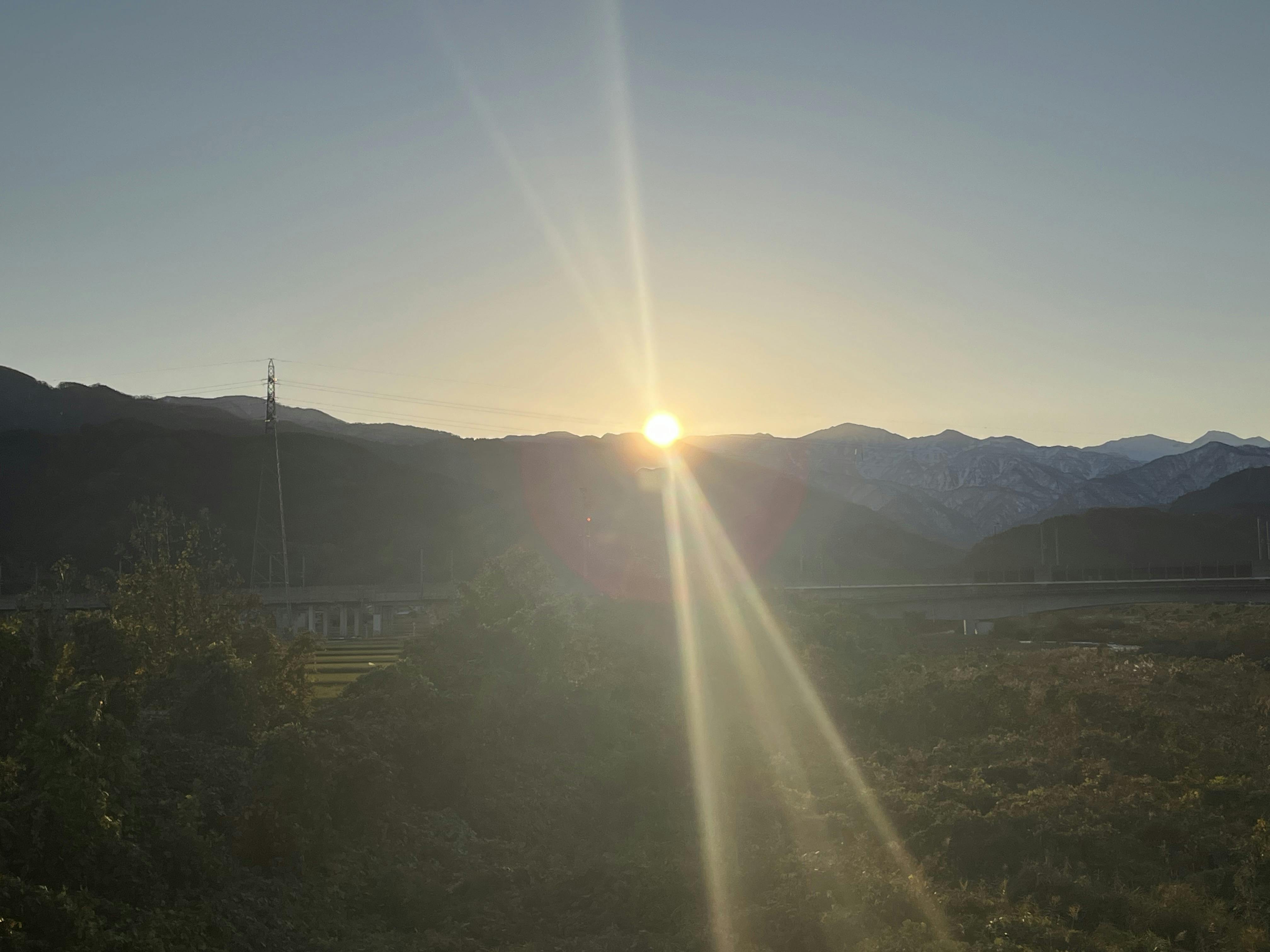 車窓から見えた立山連峰に続く北アルプスの山々