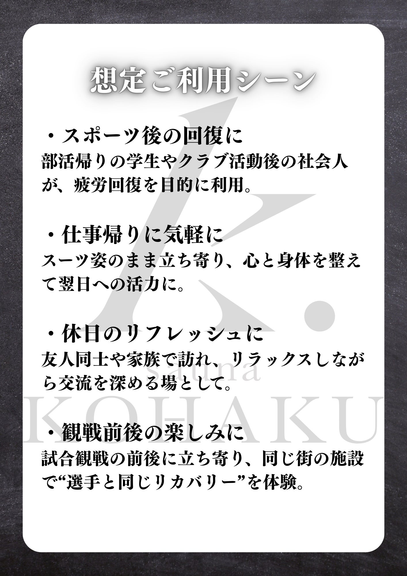 KOHAKUは、ただ汗を流すためのサウナではありません。