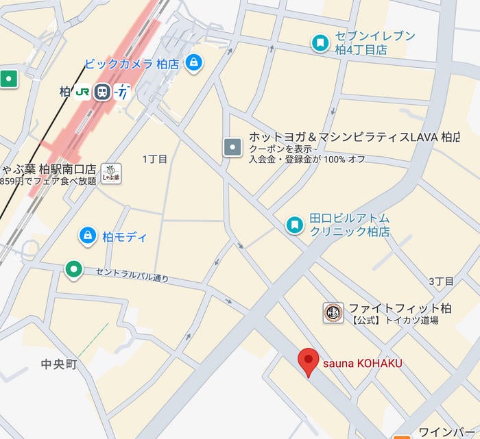 KOHAKUは、柏駅東口から徒歩7分の好立地にあり、柏駅から三協フロンティア柏スタジアムへ向かう途中に位置しています。