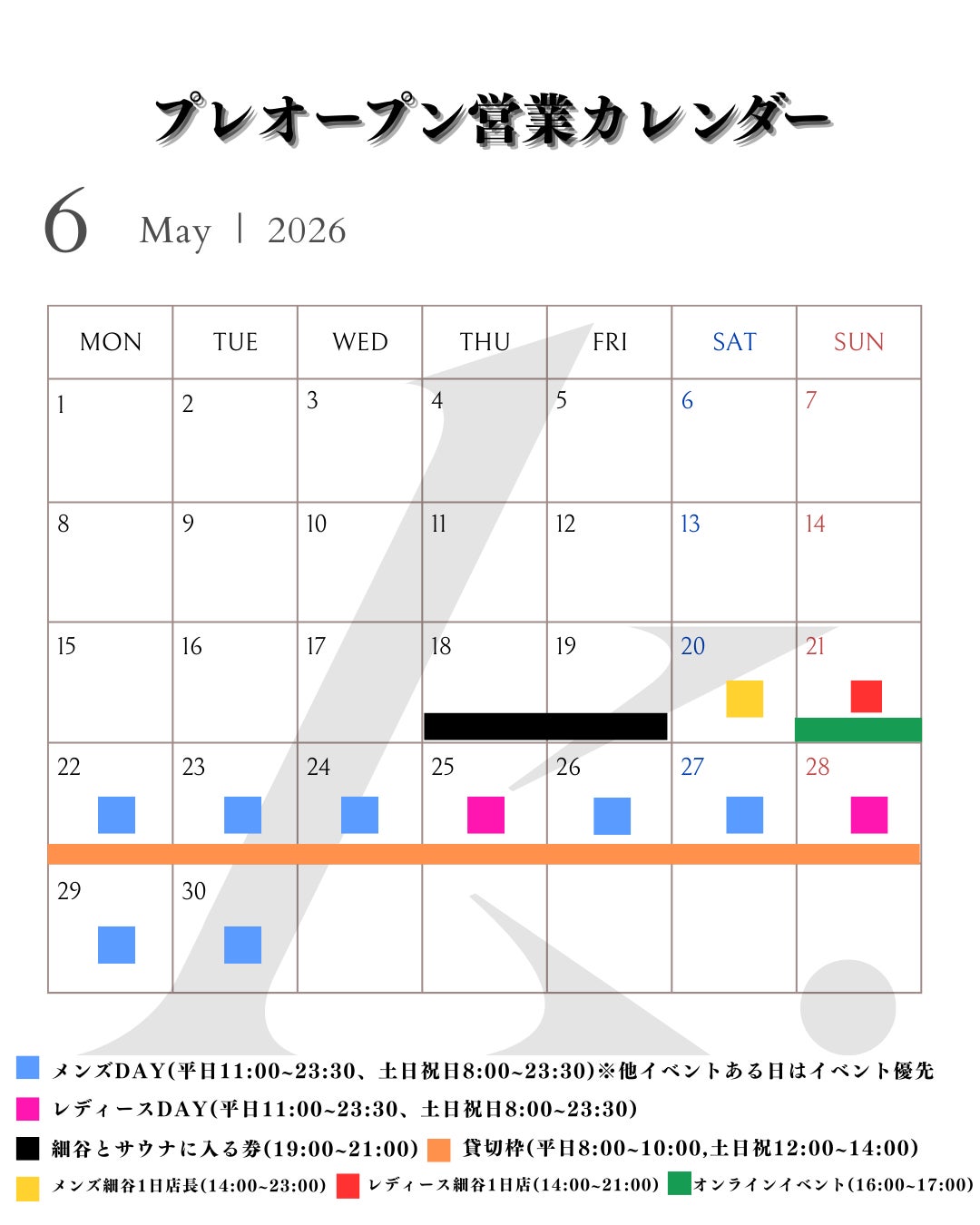 プレオープン営業カレンダーは予定でございます。