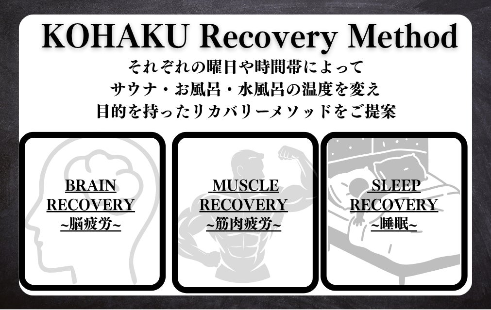 サウナ好きな方はもちろん、サウナ初心者の方も楽しめるように、KOHAKU独自のリカバリーメソッド