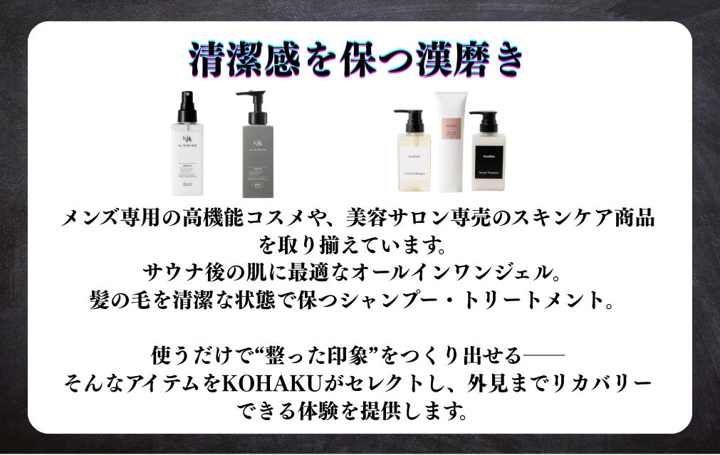 KOHAKUでは、ただ“整う”だけでは終わらせません。