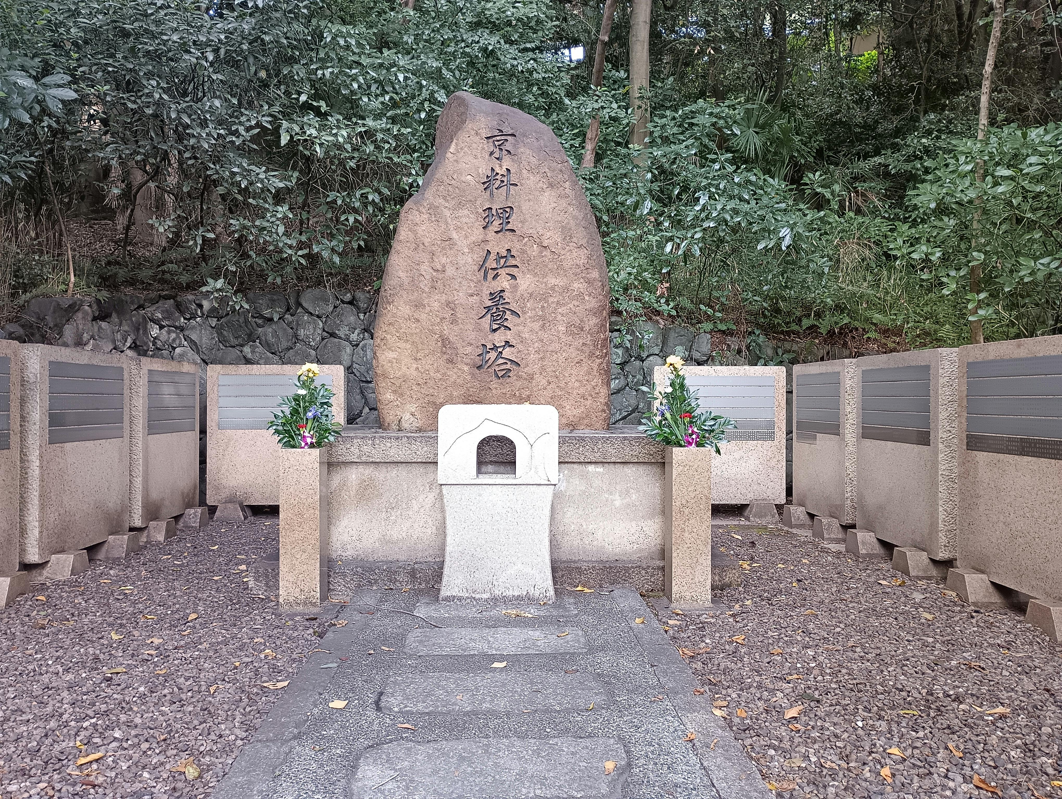 高台寺の隣には霊山観音があり、そこには「京料理供養塔」がまつられています。その銘板には京料理に携わってきた先人達の名前が刻み込まれています。