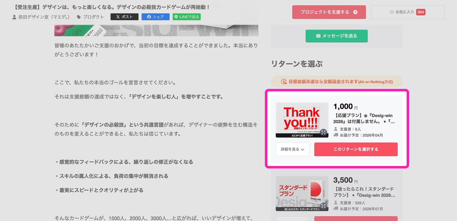 ・「Desig-win 2026 本品は不要だけど、プロジェクトを応援したい」