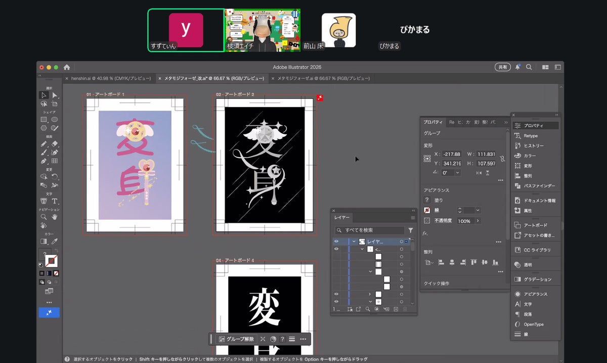 こんな風に作業画面を共有しながら、ここはこうじゃないか、こういうときはこのツール、といったことを話し合いながら制作を進めています。