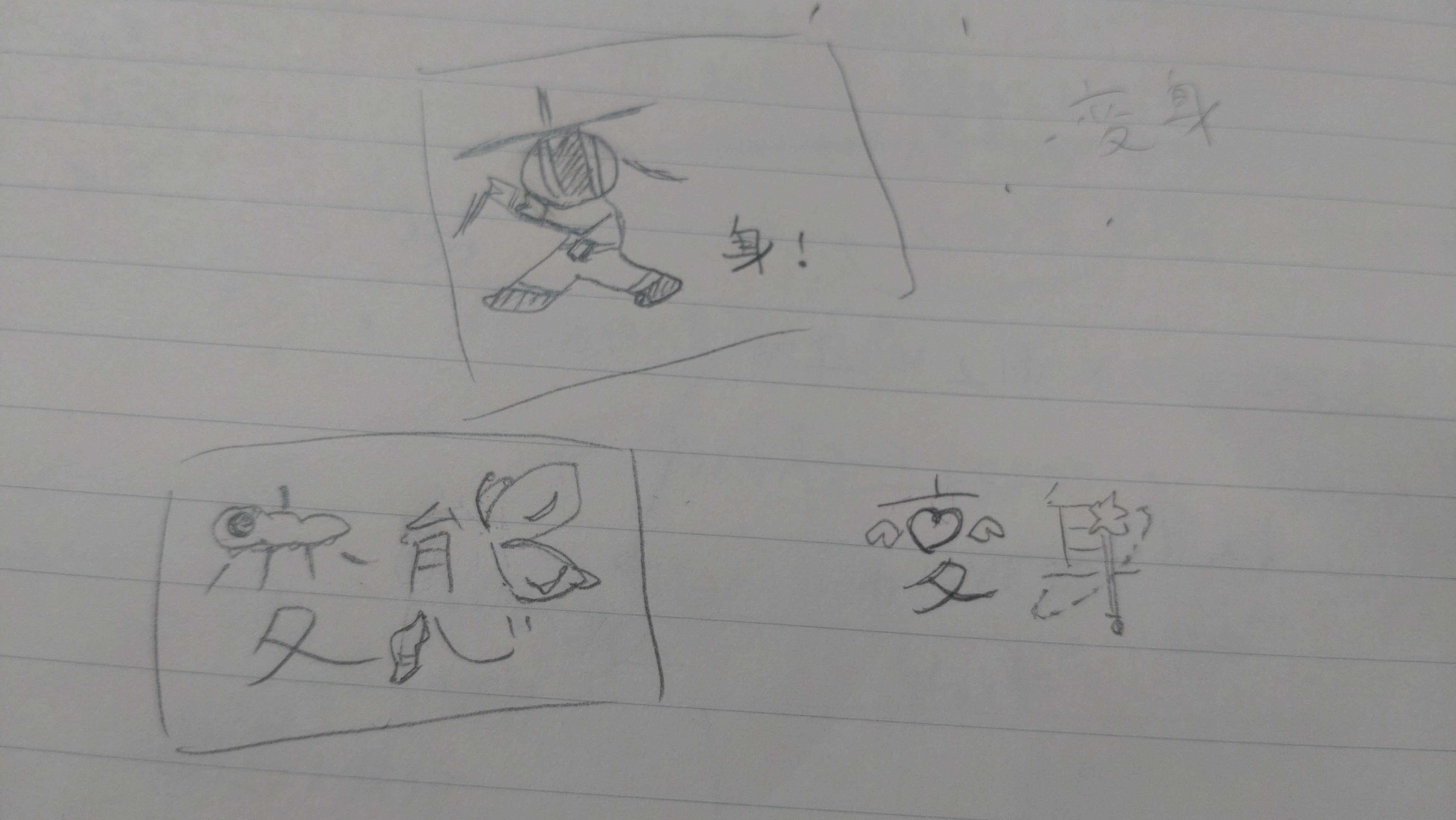 特に「変身」の「変」という文字をどうにかこうにかできないか、どうしようかなっていうところで悩んだんですけど。