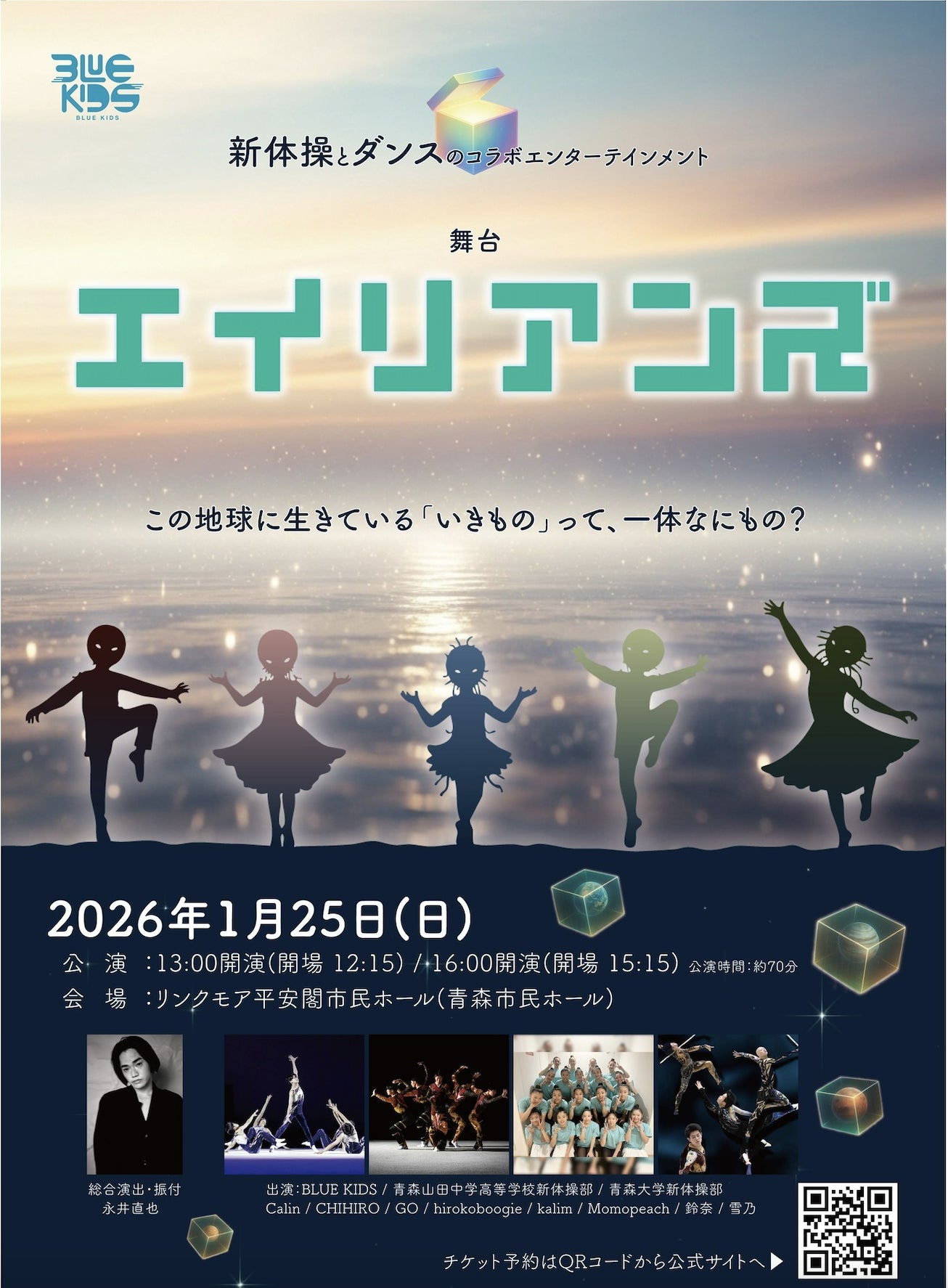 新体操とダンスの融合で、子どもたちが “自ら創る” 舞台。この作品『エイリアンズ』は、単なる発表の場ではなく、一人ひとりの挑戦と成長を映し出す「原体験の舞台」です。