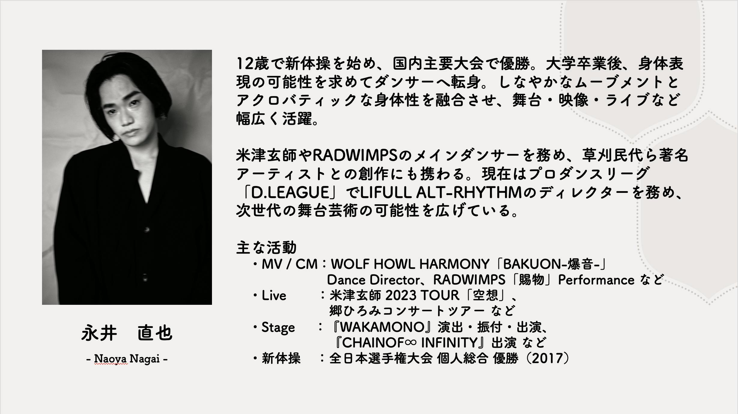 子どもたちの可能性を引き出すことを目的として活動している中で、原体験の数と日頃取り組んでいる新体操の練習で積み上げてきたものを披露する機会が少ないと思い、新体操とダンスを融合した舞台を自分たちで創り、新たな原体験とそれを思う存分発揮する場所を提供したいと考え、開催を決めました。演出は米津玄師やRADWIMPSなどの振付・出演、日本初のプロダンスリーグ「D.LEAGUE(Dリーグ)」に出場し、業界の第一線で活躍する「LIFYLL ALT-RHYTHM」のディレクターである永井直也氏が担います。新体操とダンスの互いの魅力も実感し、見る人を楽しませたり、感動させる作品に仕上げてくれること間違いありません。冬の開催ということで、寒い時期ではありますが、心をホッとしてくれる舞台にしていきたいと思います。「子どもの元気が日本を元気に!」を掲げ、我々は活動しておりますが、地元の子どもたちと共に地域を元気に盛り上げてる一助となるイベントにしていきたいと思います。