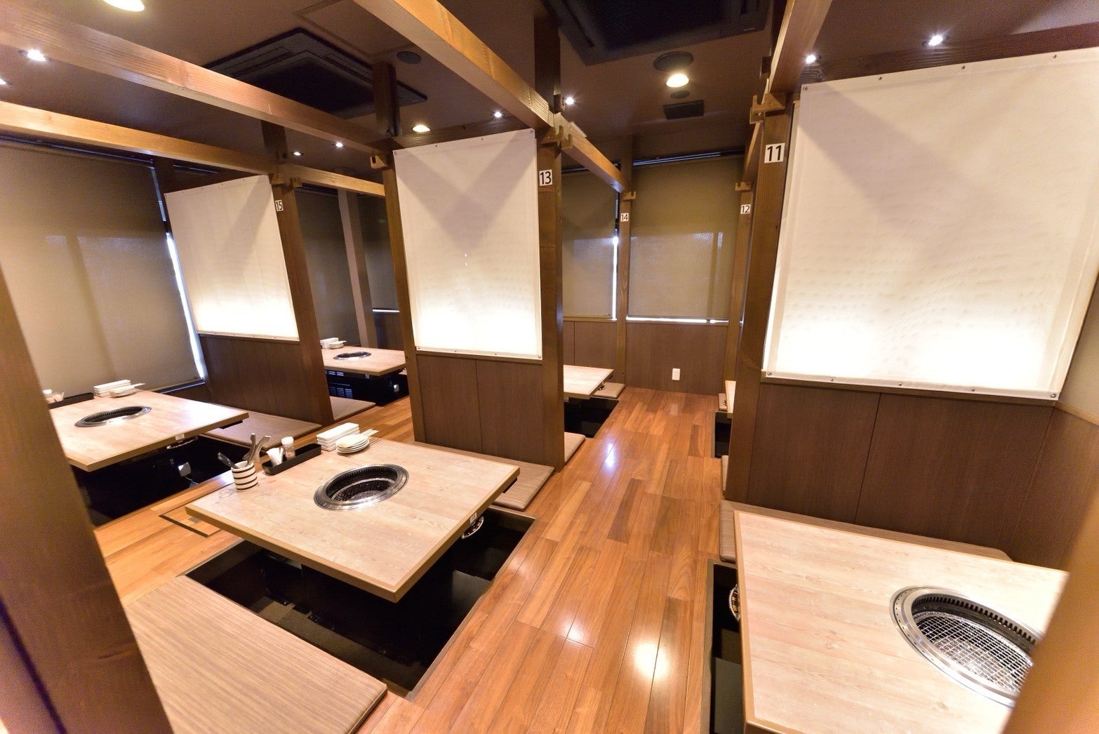 焼肉ちどりは基本的に、4名向けの半個室になっていますが、すだれの間仕切りを下ろす6〜8名様の半個室でご利用いただけます!