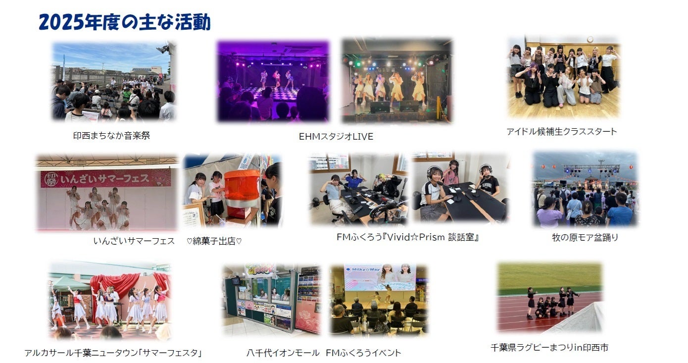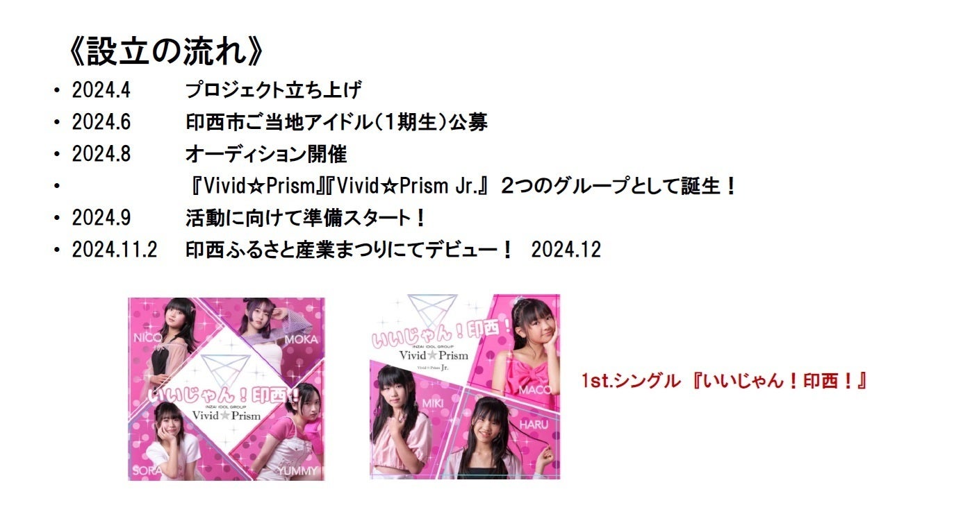 印西市をPRする社会貢献型アイドル「Vivid☆Prism」は。デビュー1周年を迎えることができました、この街の魅力を音楽と笑顔で全国に発信したくプロジェクトを立上げ「Vivid☆Prism」が結成されました。この1年間、沢山の方に支えられライブ、PR活動をしてまいりました。