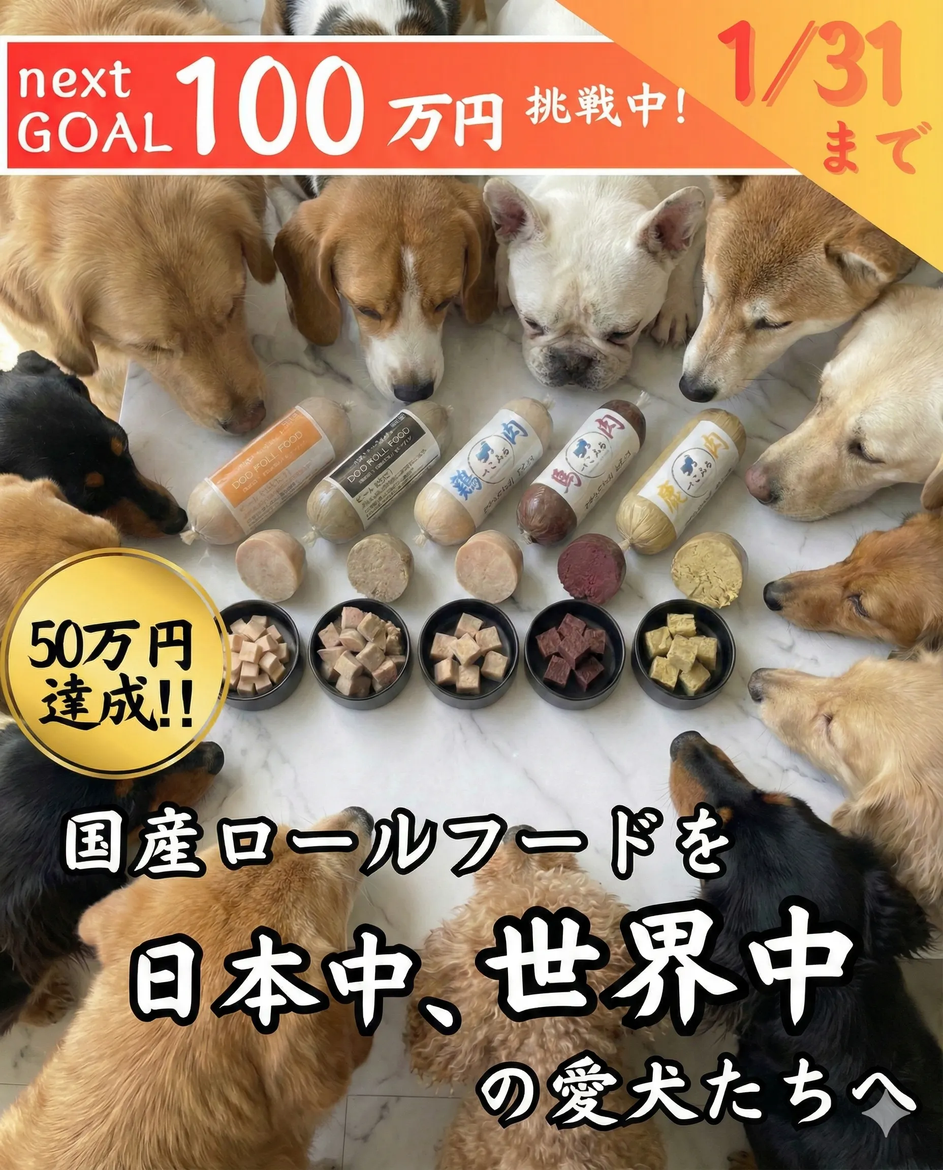 【開始3日で目標達成・新たな到達点を目指す】ネクストゴール100万円へ。東北の食品工場から世界へ、挑戦は止まりません。株式会社ぺこふる代表の菊地です。昨年末は大変な感動をありがとうございました。クラウドファンディング開始からわずか3日。 凄まじい熱狂を巻き起こしたこのプロジェクトは、驚くべきことに、最初の目標をわずか3日でクリアしました。スマホの通知が鳴るたび、支援者のお名前・コメントを見るたび、「食べる想い出をつくりたい」という僕たちの想いが、たしかに皆さんに届いているのだと、同じ想いを持った仲間が、たしかにここにいるのだと、胸が熱くなりました。1/31まで残り1ヶ月、まるまる余った挑戦期間。せっかくいただいたこの機会、せっかく集まったこの仲間たちと、ここで満足して立ち止まるには勿体無い。私たちの目指す場所を、夢を、もう一歩進めてみよう。「規制の緩い日本のペットフード市場を変える」「老舗食品工場のノウハウでブチ上げる」 「本当の“日本品質”を世界へ」この実現可能な未来を近づけるために。1/31までの期間、**ネクストゴール【100万円】**に挑戦します!!集まった資金は、新商品『冷蔵DOG ROLL FOOD』をより多くのはらぺこたちへ届けるための製造・販売体制の強化に。さらには、『新たな新商品』の開発資金に。追加リターンとして、まだ構想段階の「生ふりかけ第二弾」を最速先行で、数量限定でお届けします!!「もう支援したよ!」という皆様へ。 ただ目標金額が増えるネクストゴールなんて、そんなつまらないゴール設定、僕が、ぺこふるが、そんなことするわけありませんとも。①DOG ROLL FOOD-CHICKEN-のリターン数復活!②新たなコラボリターン、ギフト用リターンが登場!③完全新作!生ふりかけ第二弾の最速先行お披露目!この3本立てでネクストゴールを駆け抜けます。昨年末を超える熱狂を!今年初の大熱狂をみなさんと一緒に!!SNSでの皆様のシェアが、ぺこふるにとって最強の追い風になります。 どうか、「日本のペットフード、面白くなりそうだよ」と、周りの愛犬家・愛猫家の方へ伝えてください!残り期間、全力で走り抜けます。 さあ、はらぺこたちのおなかもこころも、もっとフルにしていきましょう!よろしくお願い致します。株式会社ぺこふる代表 菊地諒#ぺこふる #ぺこふるクラファン #クラウドファンディング #ネクストゴール #ペットフード