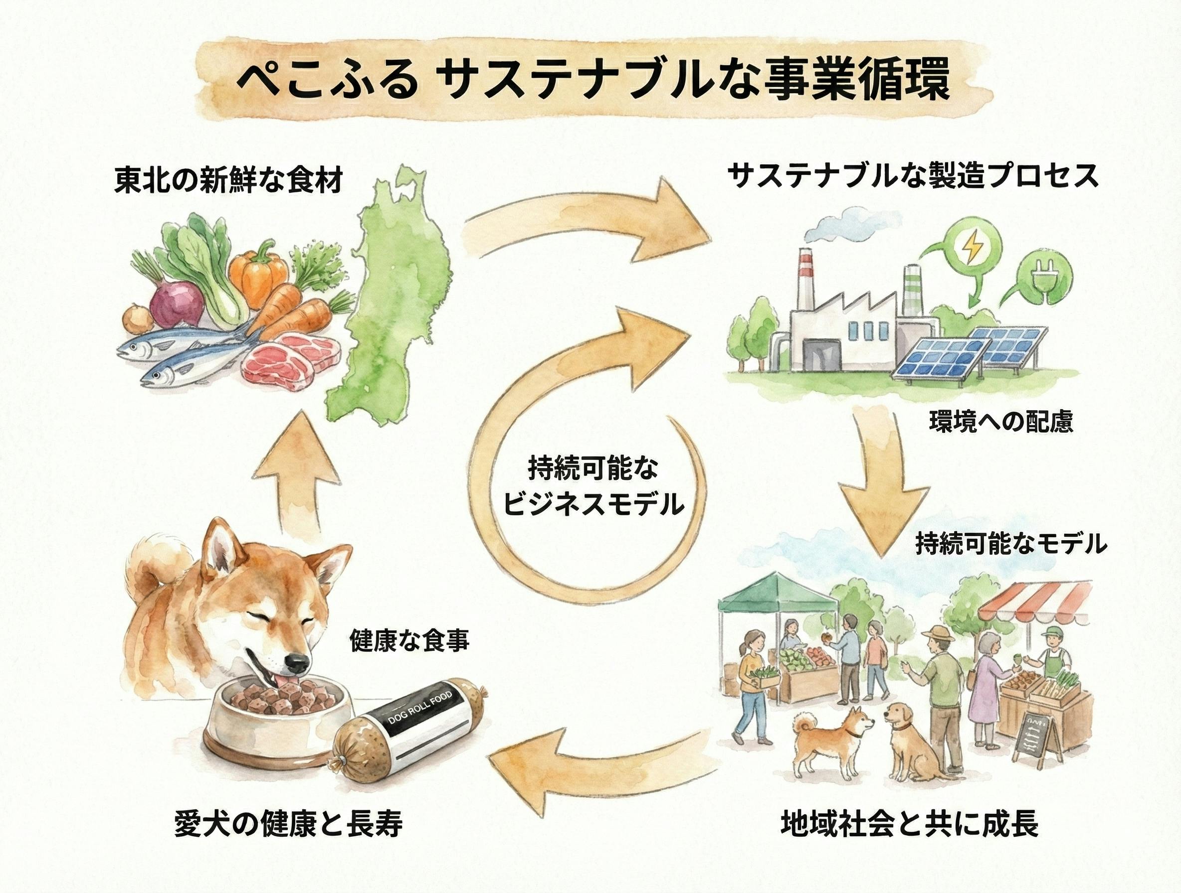 私たち、株式会社ぺこふるは、東北の豊かな自然と地域資源を活かして、愛犬の健康を第一に考えたドッグフードブランドを立ち上げています。