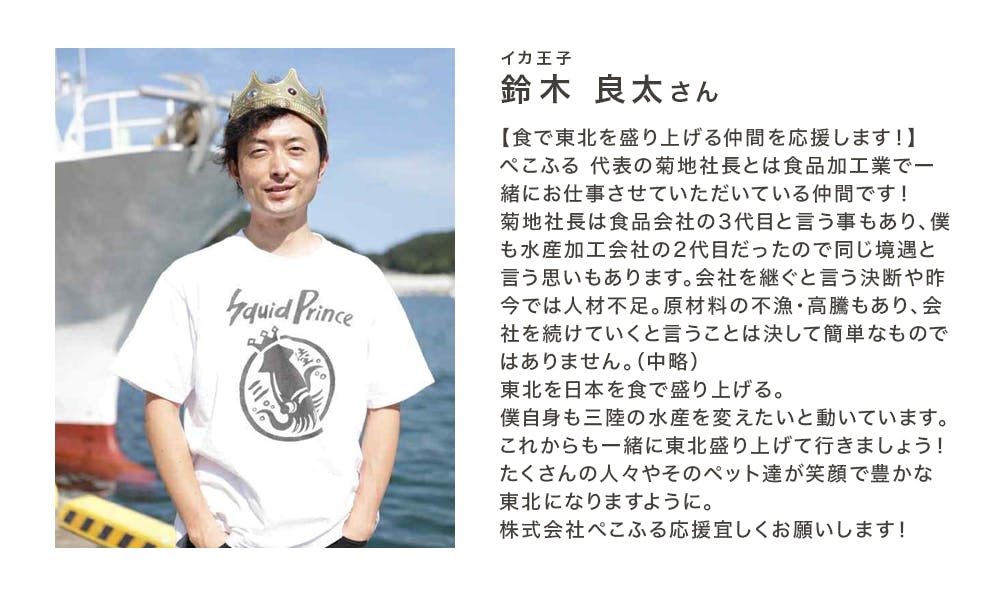 2026/01/30 18:00全文紹介もいよいよラスト、第3弾のご紹介です。最後は、僕と同じく東北で戦う「後継ぎ仲間」、食のプロフェッショナル、そして何より、僕たちが一番大切にしている「飼い主さまとワンちゃん」からの生の言葉です。この熱量を力に変えて、最後まで走り抜けます!-----------------------------------------------------■8. 中村 広隆さん(株式会社ヒラトヤ 取締役)『同じ東北出身の仲間として、そして家業を継ぐ“後継ぎ仲間”として、今回の挑戦を心から応援しています!自分自身も家業を継ぎ、日々その難しさと向き合っているからこそ、ただ守るのではなく"攻めて進化させよう”としている姿にいつも刺激をもらっています。地元から世界を目指して挑戦している姿に、同じ東北出身としても、自分ももっと頑張ろうと思わされます。最後に——将来ワンちゃん飼う予定なので、その時はお世話になります!笑』■9. 今野 雅生さん(ペット整体師 / (株)カーネ・ラ・ヴィータ 取締役)『ペット整体師として日々施術を行う中で、飼い主さんから犬の健康管理に関する悩みを聞くことも多いですが、その際私は「食事が最も重要です」と回答しております。ぺこふるさんのフードは原料や水分含有量などにもこだわっており、犬の健康維持に寄与できるフードであると確信しています。94年生まれ、宮城県出身、家業の後継者候補という共通点の多い仲間の挑戦を、心から応援しています!』■10. 鈴木 良太さん(イカ王子 / 株式会社ごんきや)『【食で東北を盛り上げる仲間を応援します!】ぺこふる 代表の菊地社長とは食品加工業で一緒にお仕事させていただいている仲間です!菊地社長は食品会社の3代目と言う事もあり、僕も水産加工会社の2代目だったので同じ境遇と言う思いもあります。会社を継ぐと言う決断や昨今では人材不足。原材料の不漁・高騰もあり、会社を続けていくと言うことは決して簡単なものではありません。昨年、ぺこふるの起業を聞きました。菊地社長と出会うまでは正直、ペットフードはどこか他人事でした。サンプルと一緒に送っていただいた自身の想いが書いてあるメッセージカードを読みました。好きなんだなぁ。とシンプルに思い、本気度も伝わりなんだか嬉しくなった事も覚えています。そこからペットフードについて様々な事を教えていただきました。東北産のおいしい肉にこだわり、くいつきにこだわったフレッシュロール。愛犬家と愛犬の一生の想い出になる愛犬ごはん。東北を日本を食で盛り上げる。僕自身も三陸の水産を変えたいと動いています。これからも一緒に東北盛り上げて行きましょう!たくさんの人々やそのペット達が笑顔で豊かな東北になりますように。株式会社ぺこふる応援宜しくお願いします!』■11. 福原 大貴さん(経営者 / 淡路島でゴルフ練習場を運営)『私自身、この「ペコフル」の商品は大切な家族の愛犬のために、プレゼントとして贈ったことで、その価値を強く実感しました!プレゼントしたのは、私のおばの愛犬・あるちゃん。年齢を重ね、これまで食べていたドッグフードに興味を持たなくなり、毎日の食事に悩む日が増えていました。そんな中でペコフルをあげてみたところ、驚くほど勢いよく食べ始めてくれました。見てるこちらが嬉しくなるほどの食べっぷり。シニア期に入って食欲が落ちている子にとって、「食べたい」と思える選択肢があることは、本当に大きいです。手頃で、長期保存もできて、扱いやすい。そしてなにより、食べる喜びを取り戻してくれる。ペコフルがなければ、ずっと悩んでいたかもしれません。ペコフルのおかげで、あるちゃんは今も食事の時間を心から楽しんでくれています。かけがえのない愛犬との時間を噛み締めながら、ヘビーユーザーとして継続購入しています。ペットにとって「食べること」は一番の楽しみ。その時間を一生涯、安心してプレゼントできる——ぺこふるはそんな商品だと感じています。新しい商品も楽しみにしています♪いつも真心を込めてつくってくださり、本当にありがとうございます。心から応援しています。』-----------------------------------------------------全3回にわたり、11名の皆さまの熱い想いを紹介させていただきました。特に福原さんの「食べる喜びを取り戻してくれる」「ペコフルがなければずっと悩んでいたかもしれない」という言葉。この事業をやる意味のすべてです。最後まで頑張っていきます!株式会社ぺこふる代表取締役 菊地 諒purpose:はらぺこたちのおなかもこころもフルにするmission:食べる想い出をつくる もっと見る
