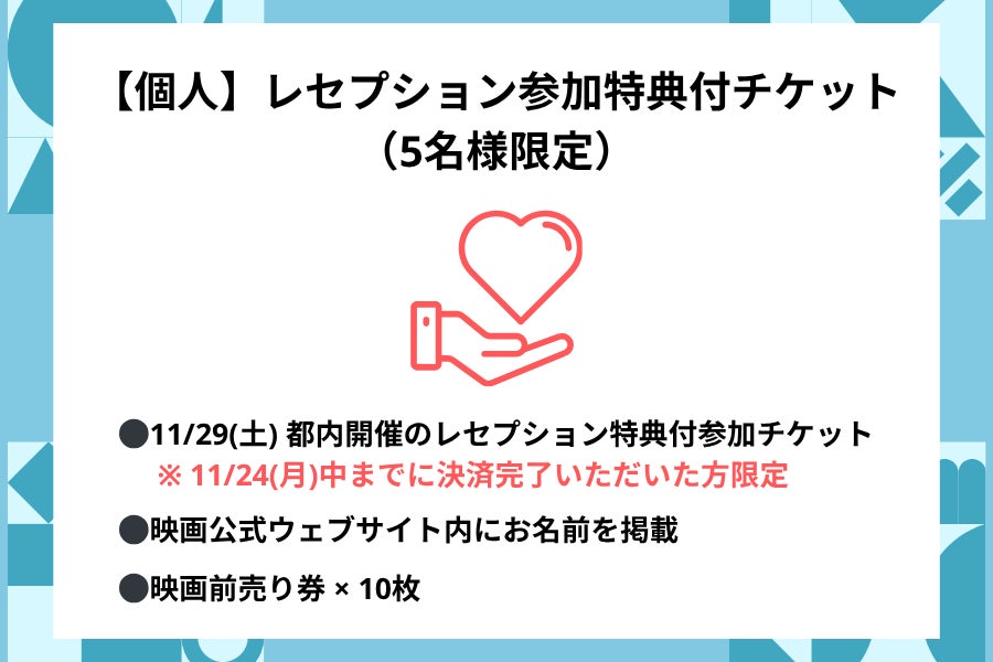 映画前売り券の他、映画公式パンフレット 1冊などがセットになった応援プランになります。