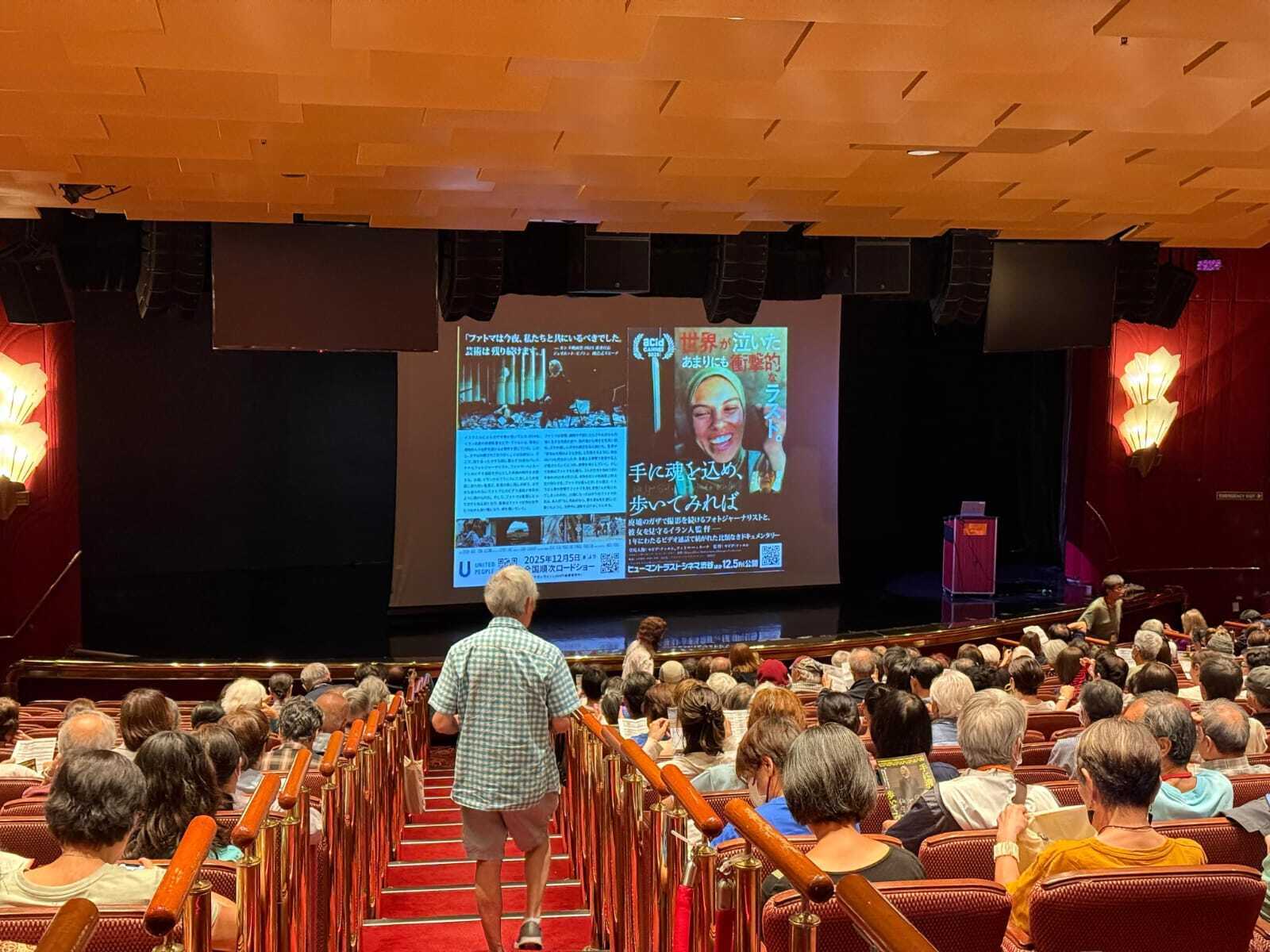 2026/03/27 09:42クラウドファンディング支援者の皆様ファトマ・ハッスーナさんの写真展がピースボート地球一周の船旅 2025年12月 Voyage122 船内で展開されています。3月19日に、映画『手に魂を込め、歩いてみれば』の上映会が開催され、400名以上が参加。そして、なんとガザのために150万円以上もの寄付金が集まったそうです。ガザの人々への支援に使われます。世界を旅したかったファトマ。このように船で地球一周しながら多くの皆さんと出会うことが出来ました。映画は上映が日本各地で続いています(日本全国上映を目指していますがまだ未上映地域が。)。また、写真展は、4月9日(木)~5月8日の間に、札幌市のbokashiで開催決定しています。4月11日(土)には、13:00より映画上映と本作配給会社ユナイテッドピープル代表関根健次によるアフタートークを予定しています。ぜひお近くの方はご参加ください。【4月11日・札幌】映画「手に魂を込めて、歩いてみれば」上映会+トーク(関根健次/ユナイテッドピープル) もっと見る