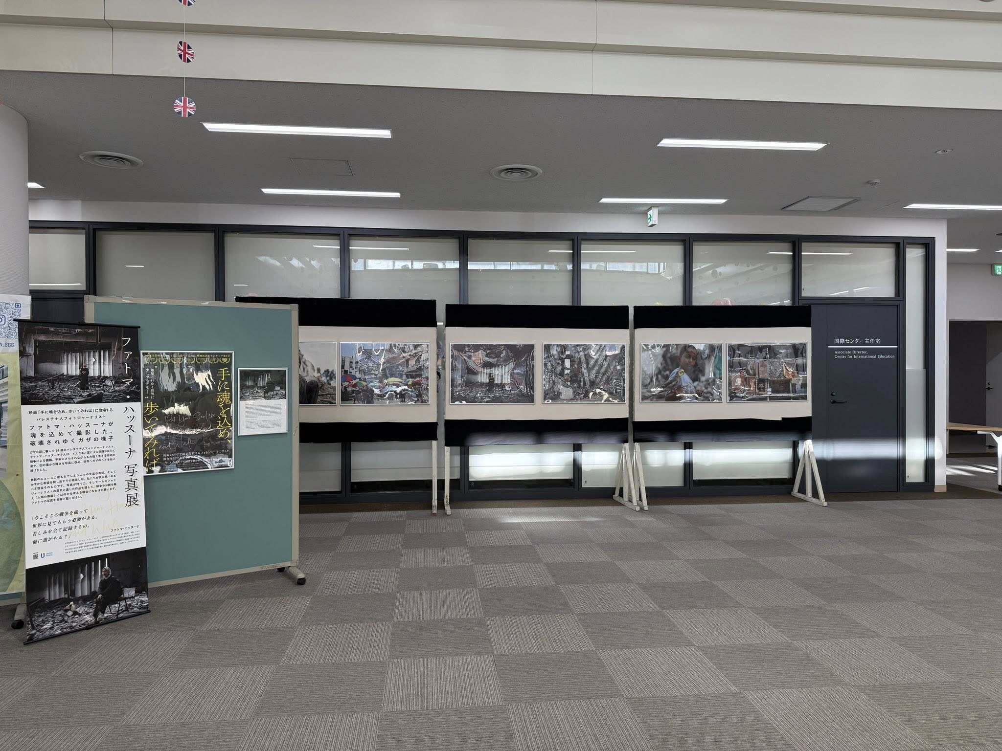 2026/04/09 09:18ファトマ・ハッスーナ写真展 クラファン応援皆様昨日は、西南学院大学に写真設営サポートに行ってまいりました。ピクチャーレールがないことがわかり、どのように設置するか四苦八苦。一部は机の上に滑り止めを置き、立てかけとなりましたが、パネル貼り付けができました。場所は3号館1F内 Global Student Lounge。多くの留学生も利用するスペースのため、沢山の大学生がファトマの写真を目にすることに!開催期間は延長する見込みですが、どなたでもご覧いただけます。ぜひこの機会にお立ち寄りください。催場所:西南学院大学3号館1階 国際センター前福岡市早良区西新6-2-92※地域の方々もご覧いただけます。開催日:4月9日(木)~5月1日(金) 鑑賞料:無料写真提供:ユナイテッドピープル写真展特設ページ映画『手に魂を込め、歩いてみれば』は、各地で映画館上映が続いています。また、以下の上映トークイベントがございます。※公式サイトにリンク有4月11日・札幌上映会&トーク(関根健次/ユナイテッドピープル)5月24日・出雲上映会&トーク(関根健次/ユナイテッドピープル)5月30日・長崎上映会&トーク(関根健次/ユナイテッドピープル)それから、以下の上映トークイベントも!4月11日・横浜上映会&トーク(日本国際ボランティアセンター(JVC) 高橋千絢さん(パレスチナ担当)) もっと見る