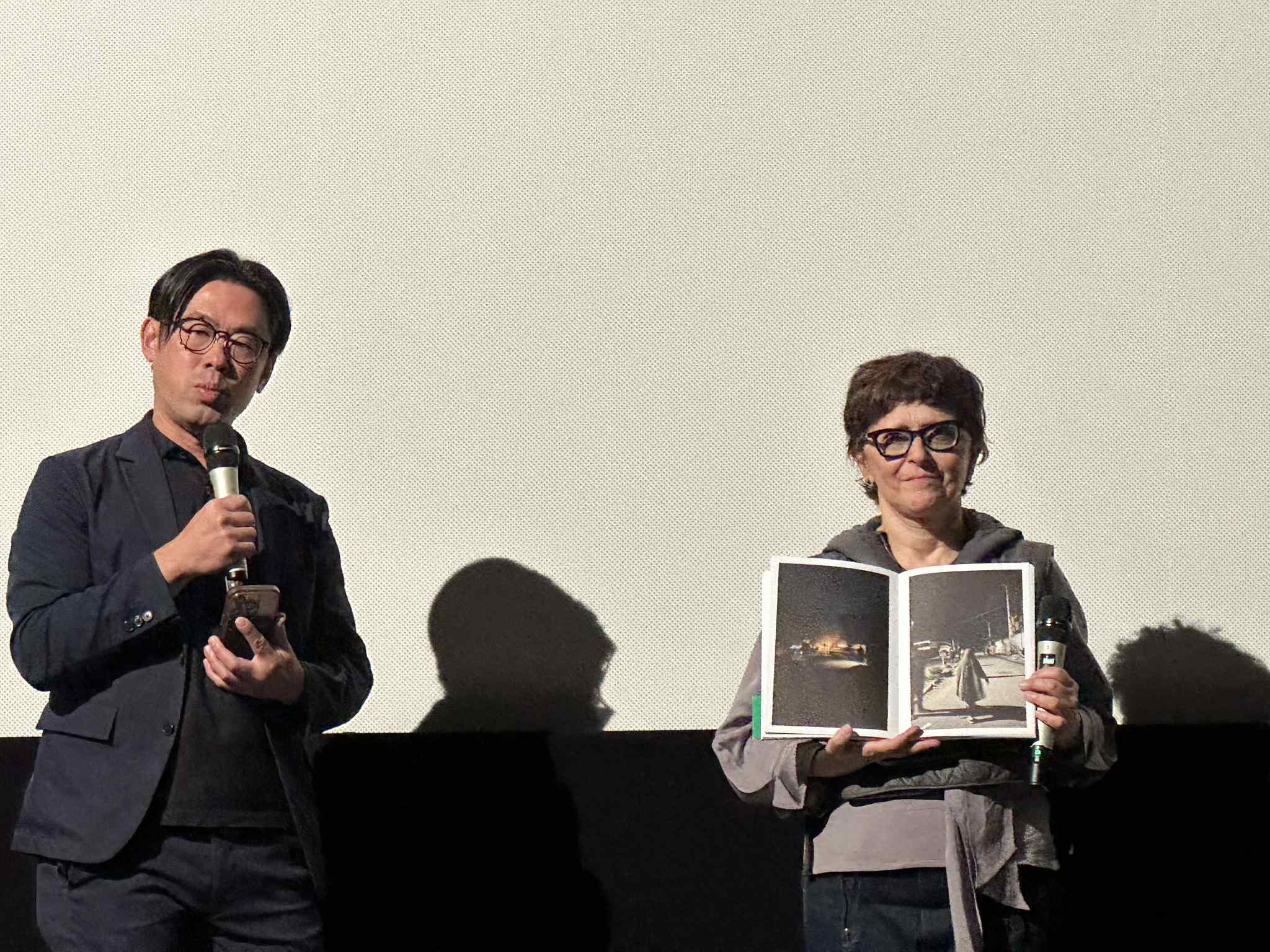 などお尋ねしました。ファトマは写真を携え、世界中を旅したがっていました。フランスで出版され、現時点で4,500部が販売されたファトマの写真集を会場に見せながら、今年のカンヌ映画祭を含め、世界中で写真展が開催されていることを監督が話し、日本での写真展の展開のこと、クラウドファンディングが実施中であることもお知らせしました。