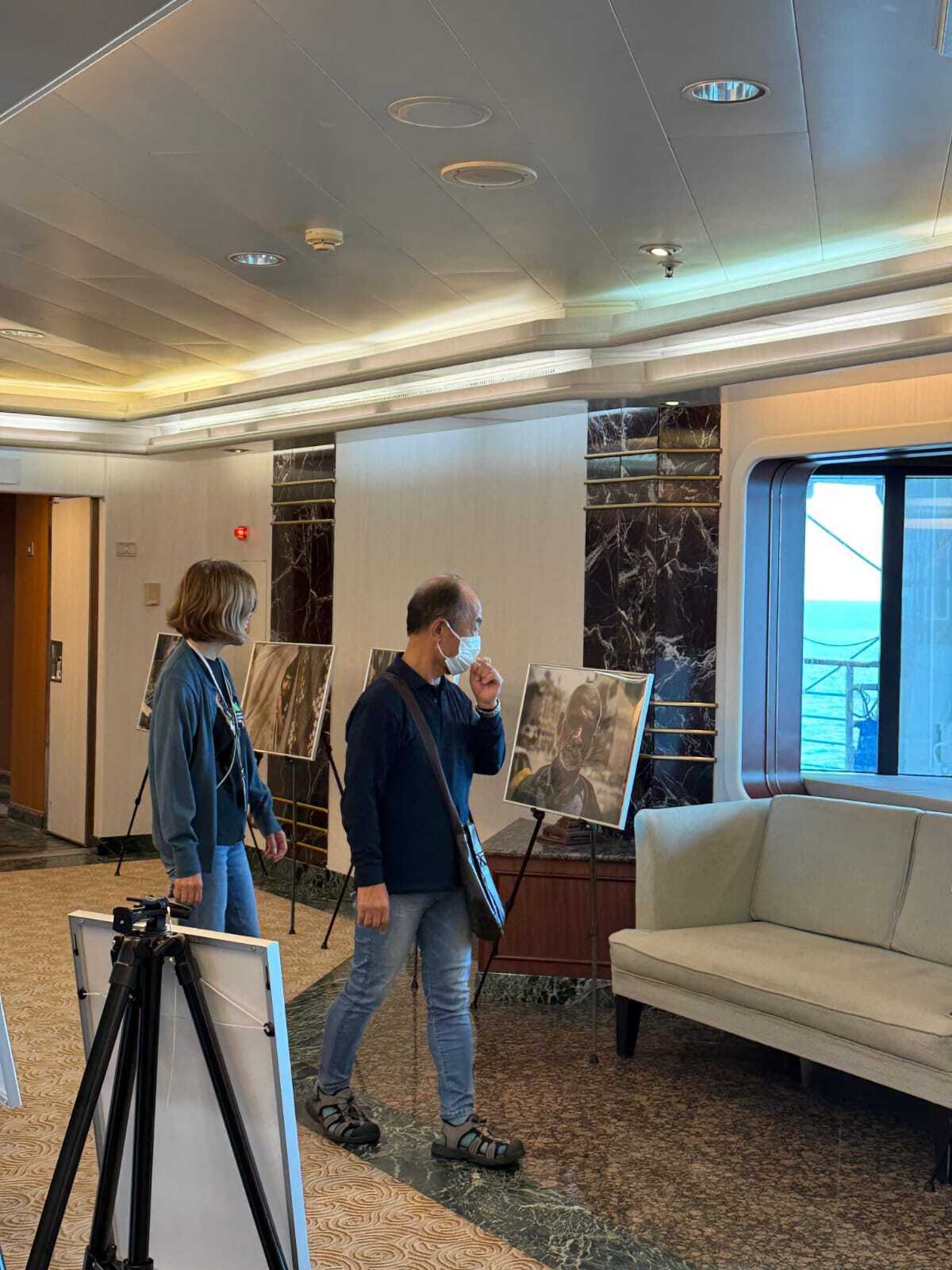 ファトマ・ハッスーナさんの写真展がピースボート地球一周の船旅 2025年12月 Voyage122 船内で展開されています。