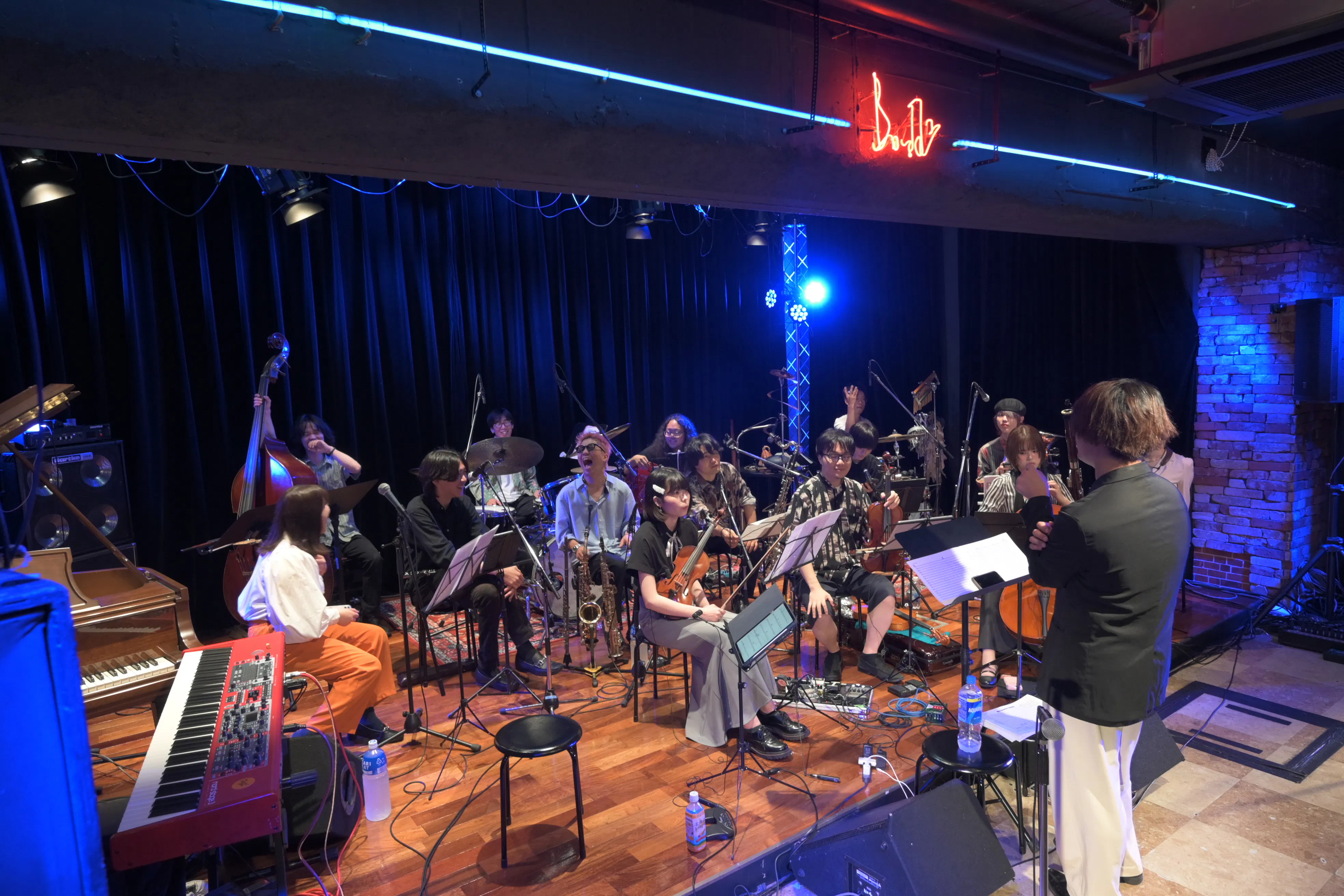 私たちは、ジャズやポップスのプレイヤーが中心となる管楽器セクションに、ヴァイオリン、チェロなどの弦楽器に加え、ファゴットやユーフォニアムなど、主にクラシックで活躍する楽器を大胆に取り入れました。