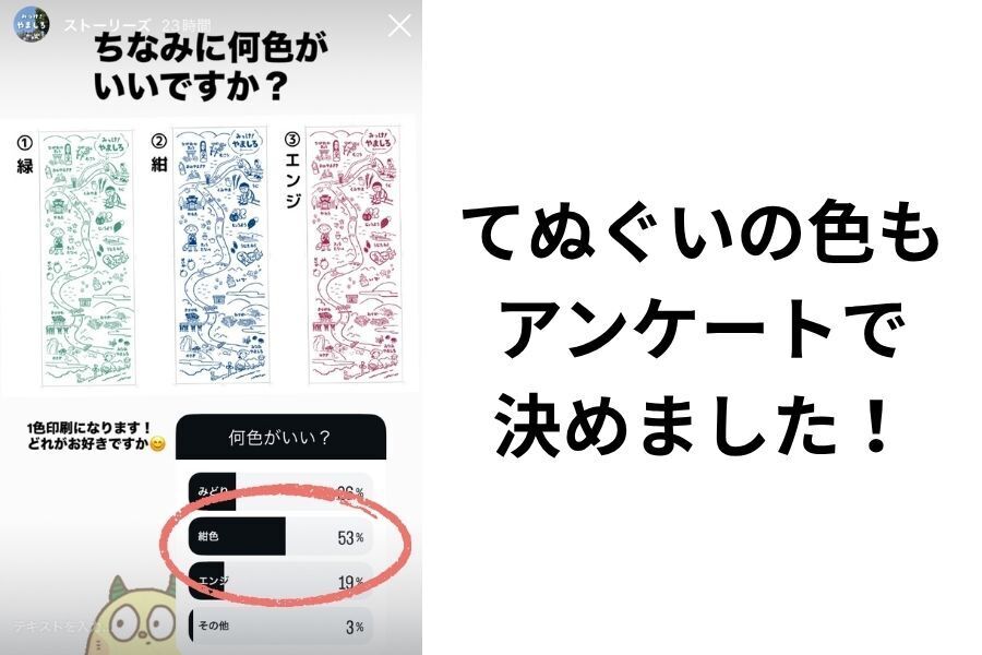 手ぬぐいの制作については、フォロワーの皆さんにアンケートをとりながら作成しました。