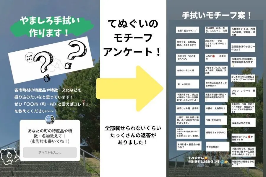 手ぬぐいの制作については、フォロワーの皆さんにアンケートをとりながら作成しました。