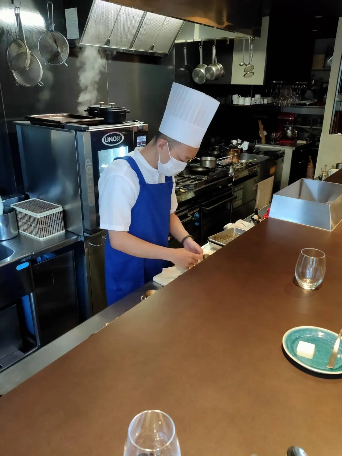 中華の香りの重ね方や火の扱い、フレンチで培ったソースの構築や皿の美しさを融合し、その場でお客様と会話しながら一皿ずつ完成させていく特別な体験です。