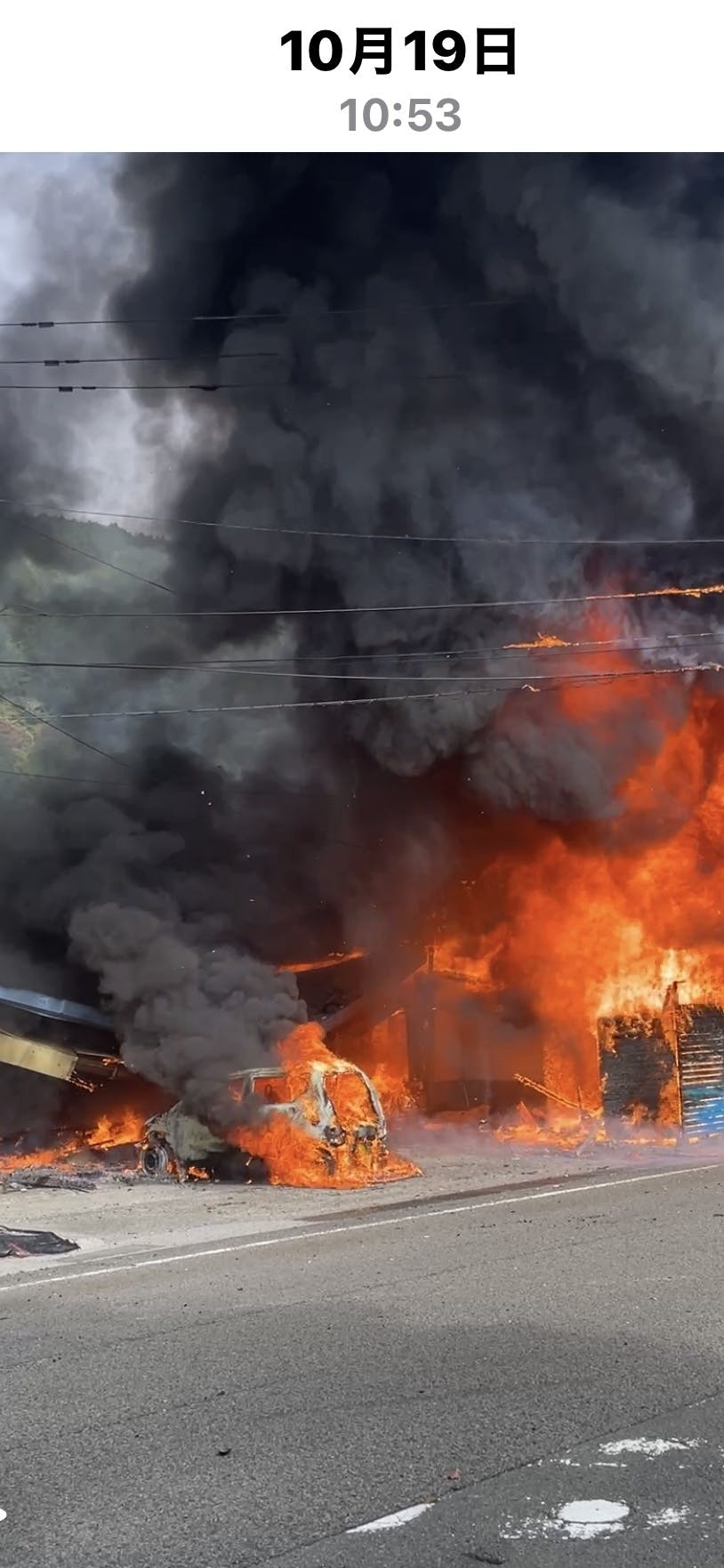 10月19日10時30分、私たち「アウトドア!ガルバンゾ」のツアー中に冷蔵庫の漏電が原因とみられる火災にて、店舗兼住宅1棟120㎡が全焼してしまいました。