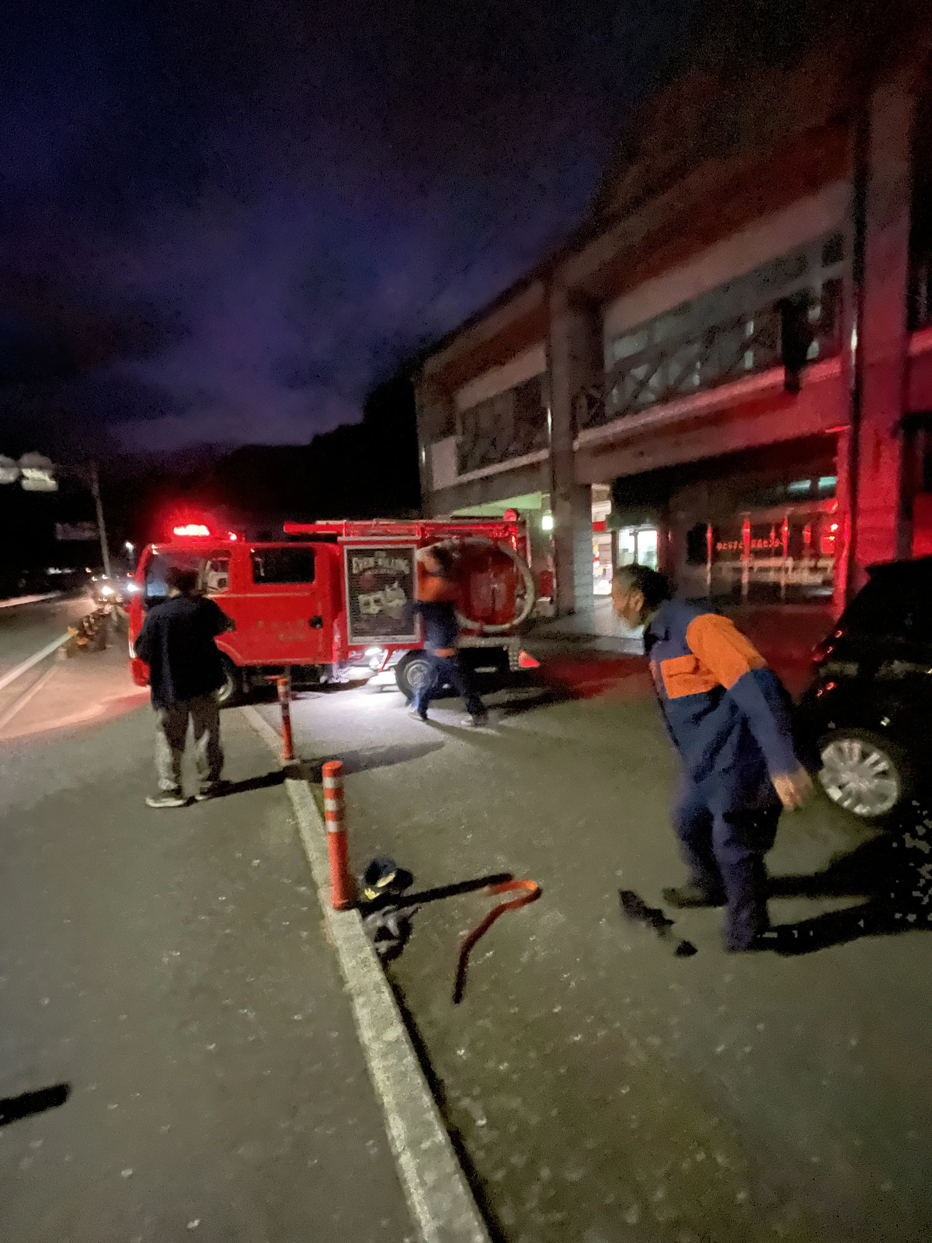 部落の緊急サイレンが鳴って旦那さんが消防団として出動しました。