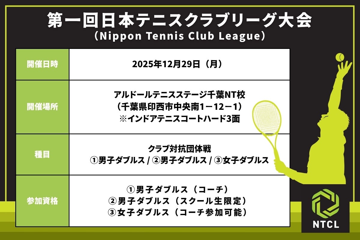 そんな「NTCL(Nippon Tennis Club League)」ですが、すでに第一回大会の開催が決定しています。
