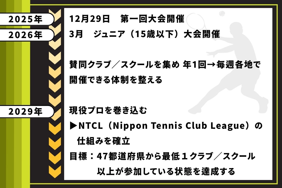 そのために、2025年春からプロジェクトメンバーたちと準備を進め、8月にはNTCL(Nippon Tennis Club League)を立ち上げました。