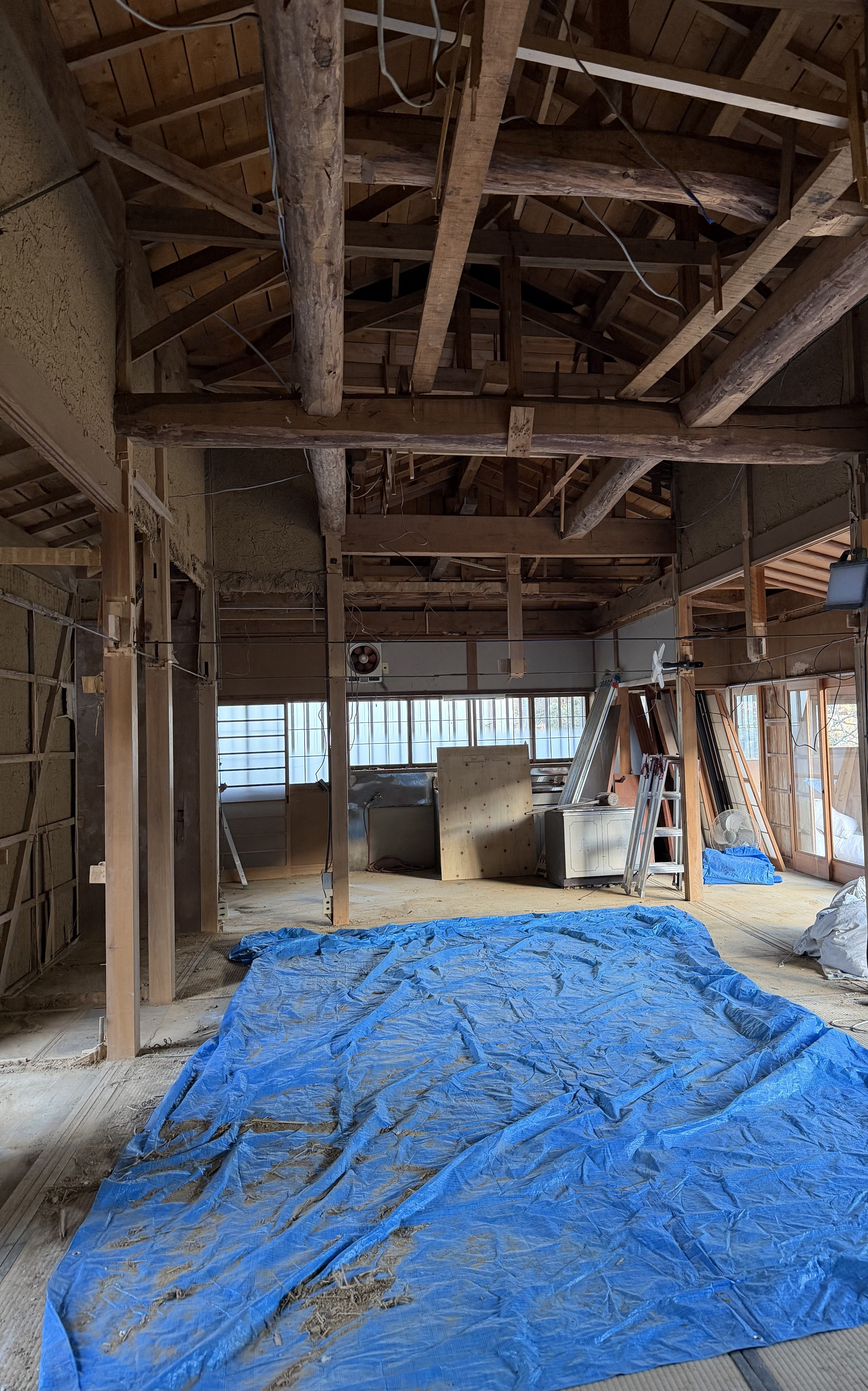 こんな状態になりました。かなり広くなったように感じます!大工さんがホコリまみれになりながら土壁を撤去してくれました。明日からは床に取り掛かってくれるそうです。どんどん剥がされていきますねー