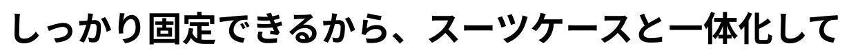 そしてある日、スーツケースの上部には必ず持ち上げるグリップがあるのでそこに固定すればよいのでは?とひらめきました。