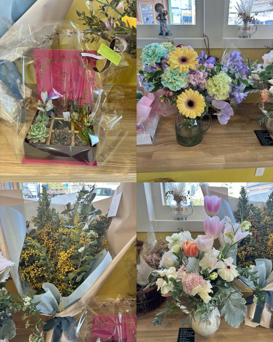 こちらは友人や作家仲間、地域の方からのお祝いのお菓子やお花など、素敵な開店祝いです!