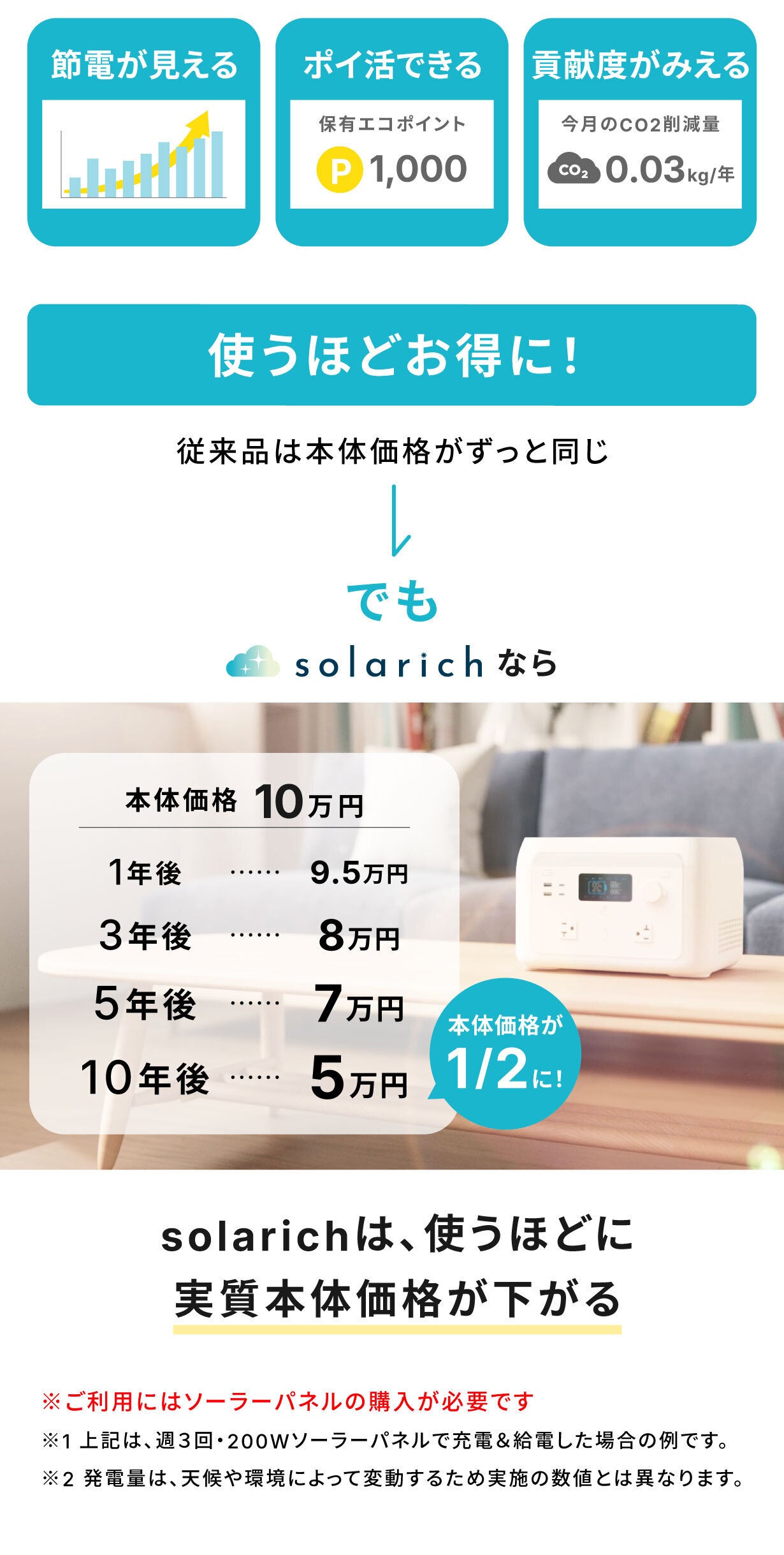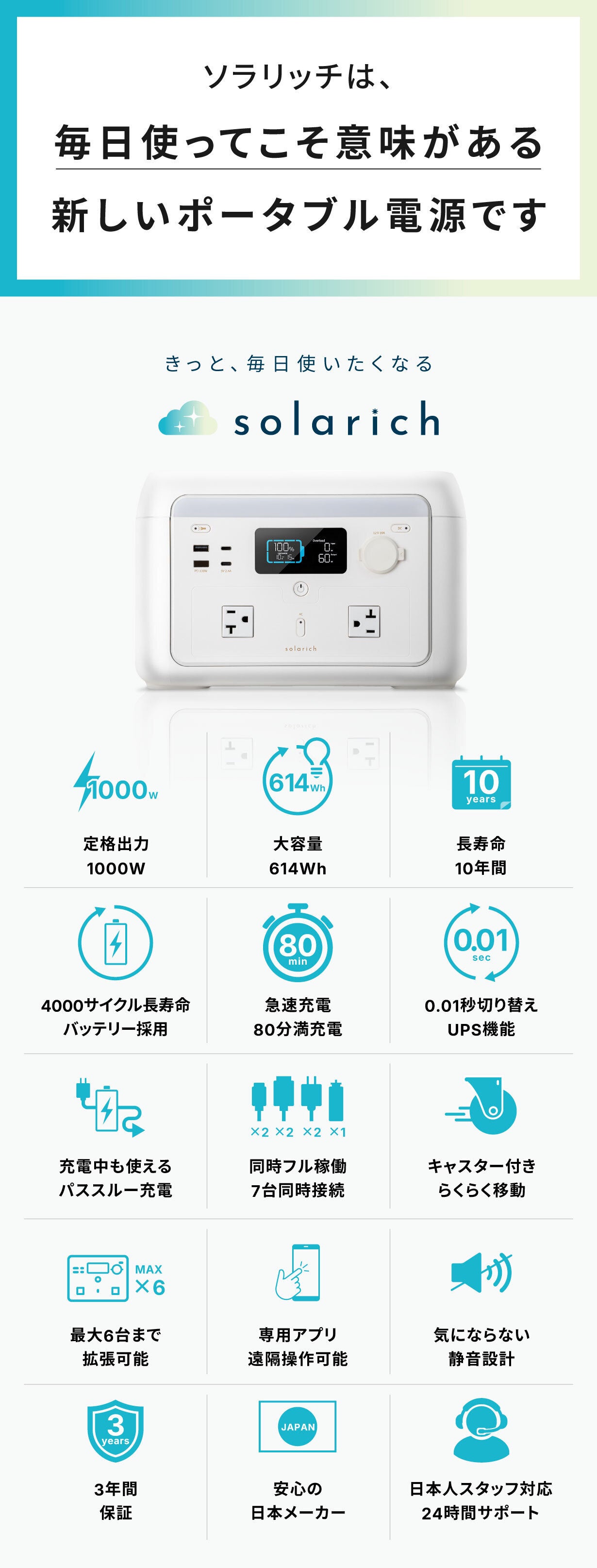 毎日使いたくなるポータブル電源 solarich(ソラリッチ)