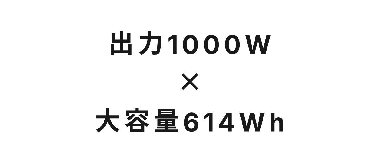 614Wh × 1000W出力で、ここまで使える。 スマホ41回、冷蔵庫12時間、テレビ6時間── 「非常時だけ」ではもったいないパワーを誇ります。
