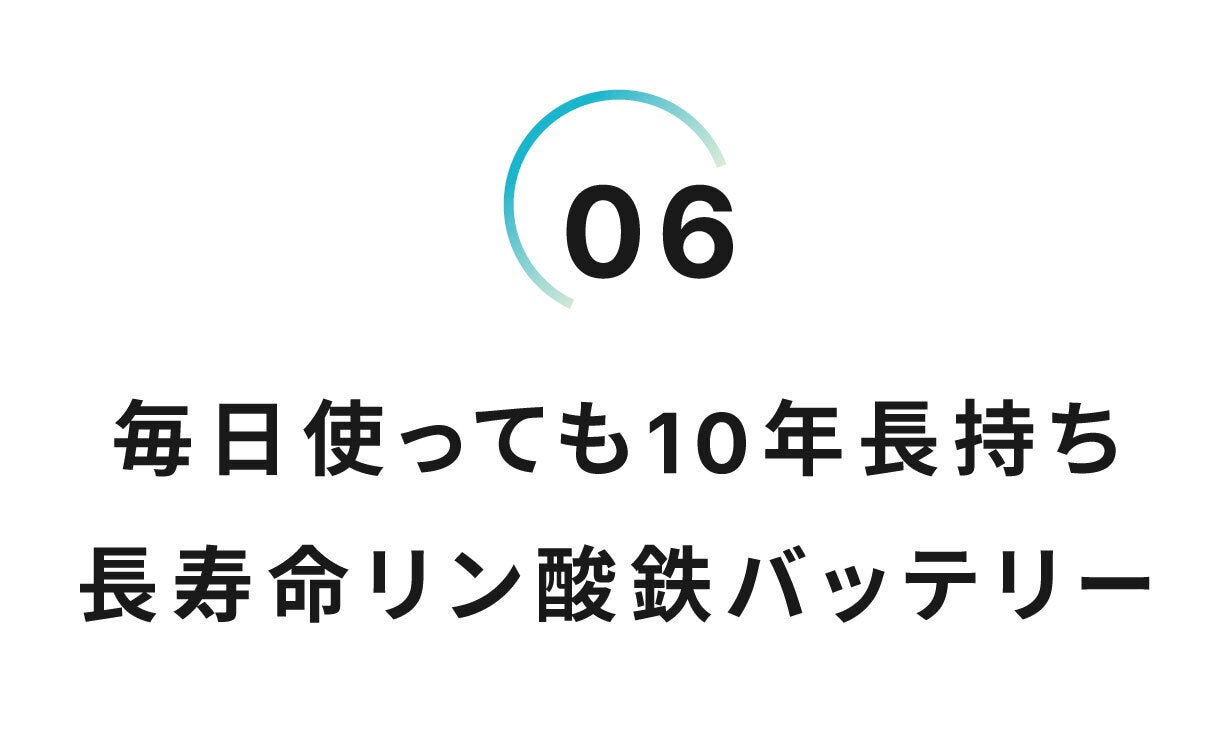 A. 約4000回の充放電を繰り返しても70%以上の容量を維持します。毎日使っても10年以上お使いいただける長寿命バッテリーです。
