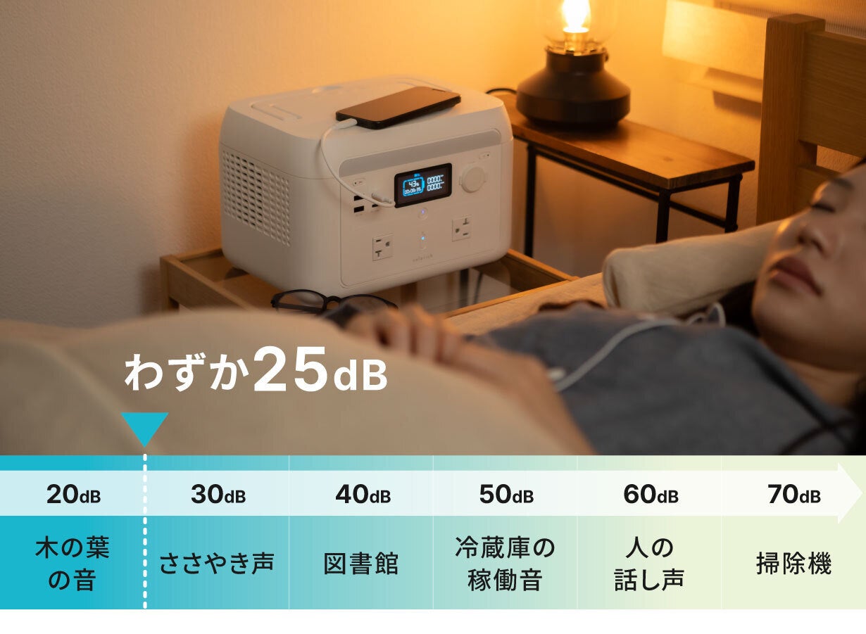 稼働音はわずか約25dB。 図書館と同等の静音設計と、熱を効率的に逃がす構造で、 就寝中やリビングでも“いるのを忘れるほどの存在感のなさ”を実現。