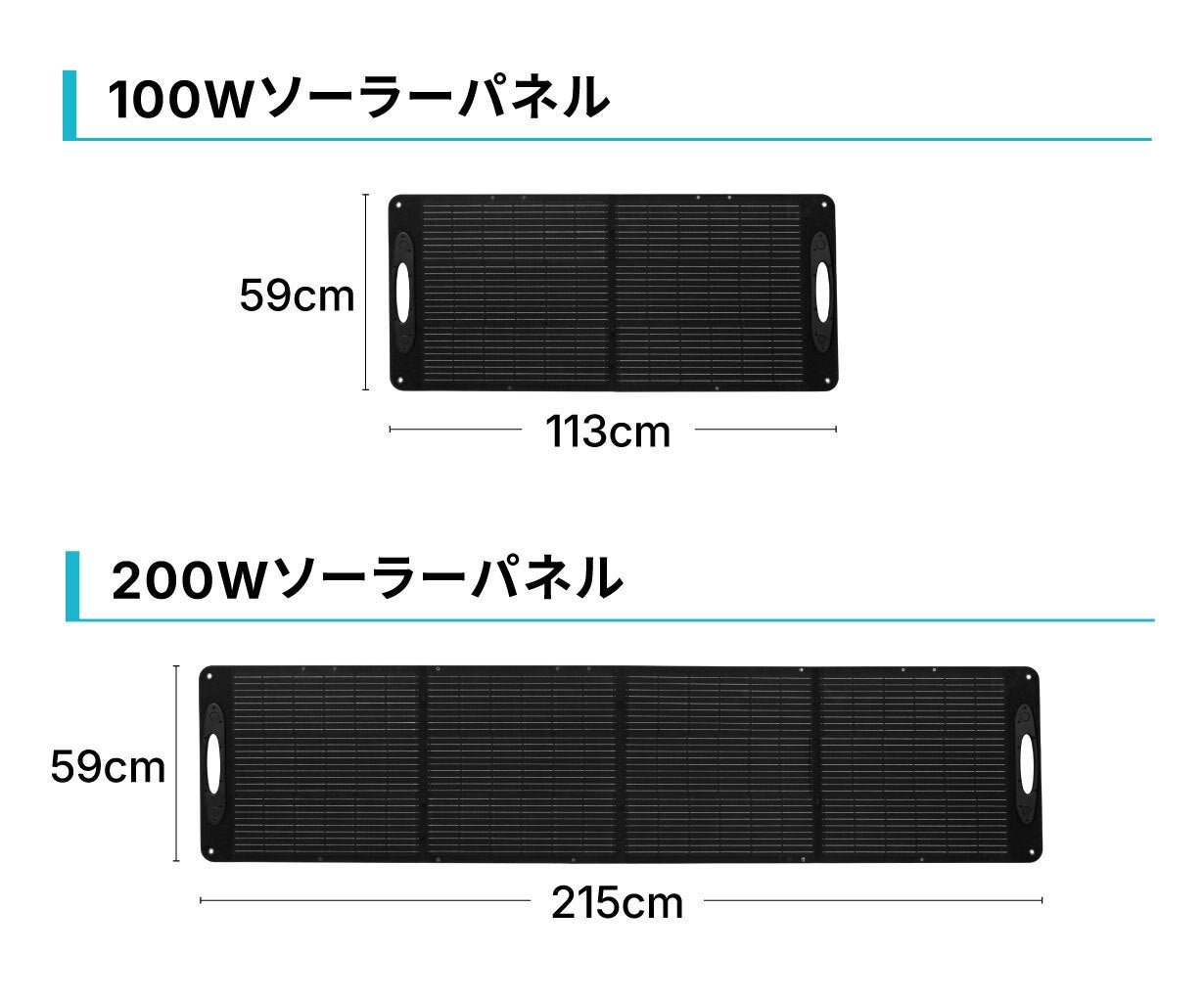 ソーラーパネルは、100W/200Wの2タイプを用意。
