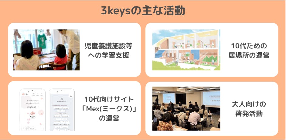 私が3keysを立ち上げたきっかけは、大学時代に家の近所の児童養護施設でボランティアをしたことでした。