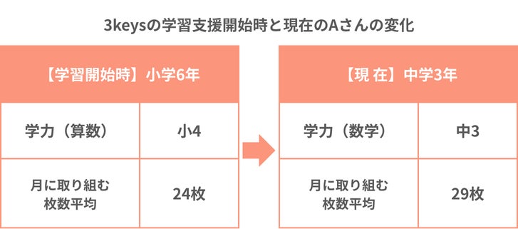 「私はずっとバカだと思っていた。でも、(3keysの)勉強を進める中で、自分は足し算と引き算を間違えて覚えていたから問題を間違えていたんだってわかった!」