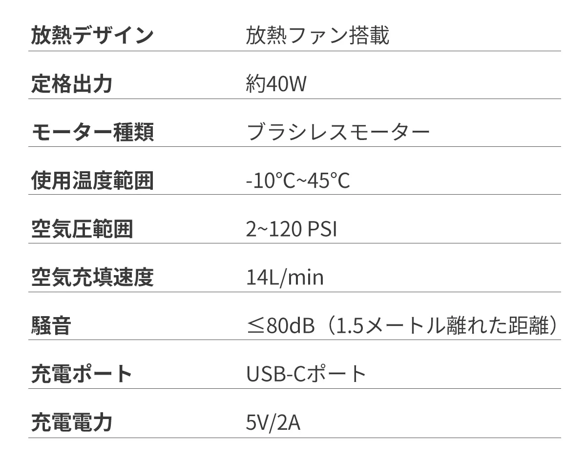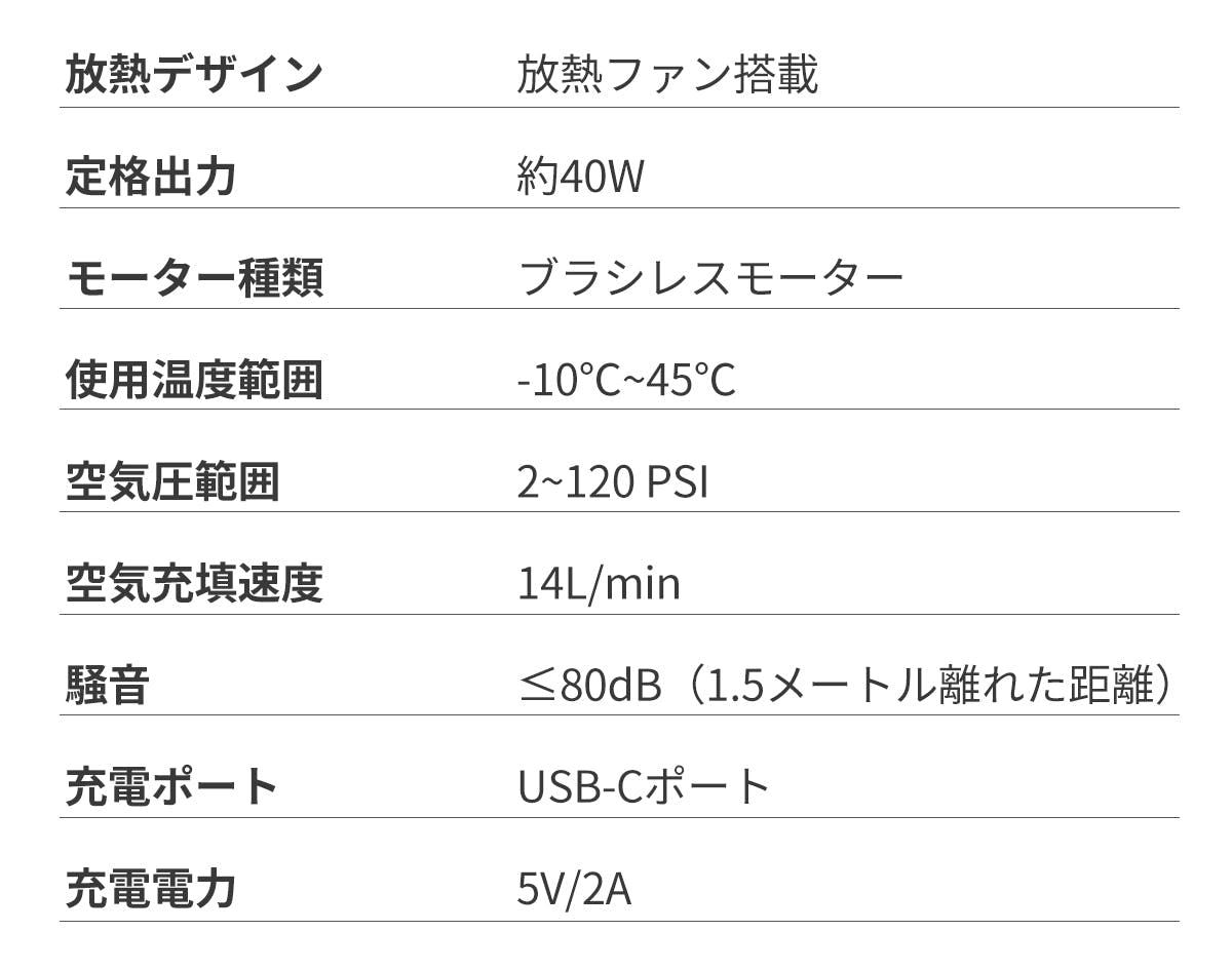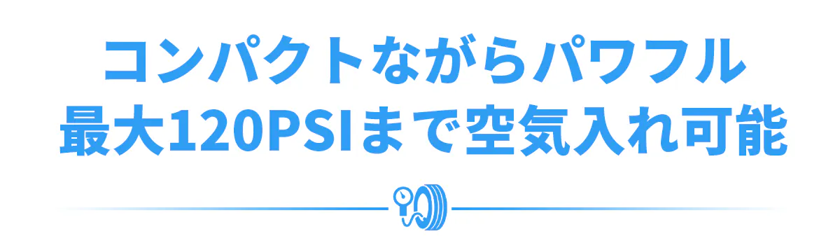 小さい見た目にふさわしくない強力なモーターが搭載されており、最大対応空気圧はなんと120PSI!ボールやマウンテンバイクなどはもちろん、高い空気圧が必要なロードバイクやオートバイにも手間をかけずに素早く空気入れ可能!
