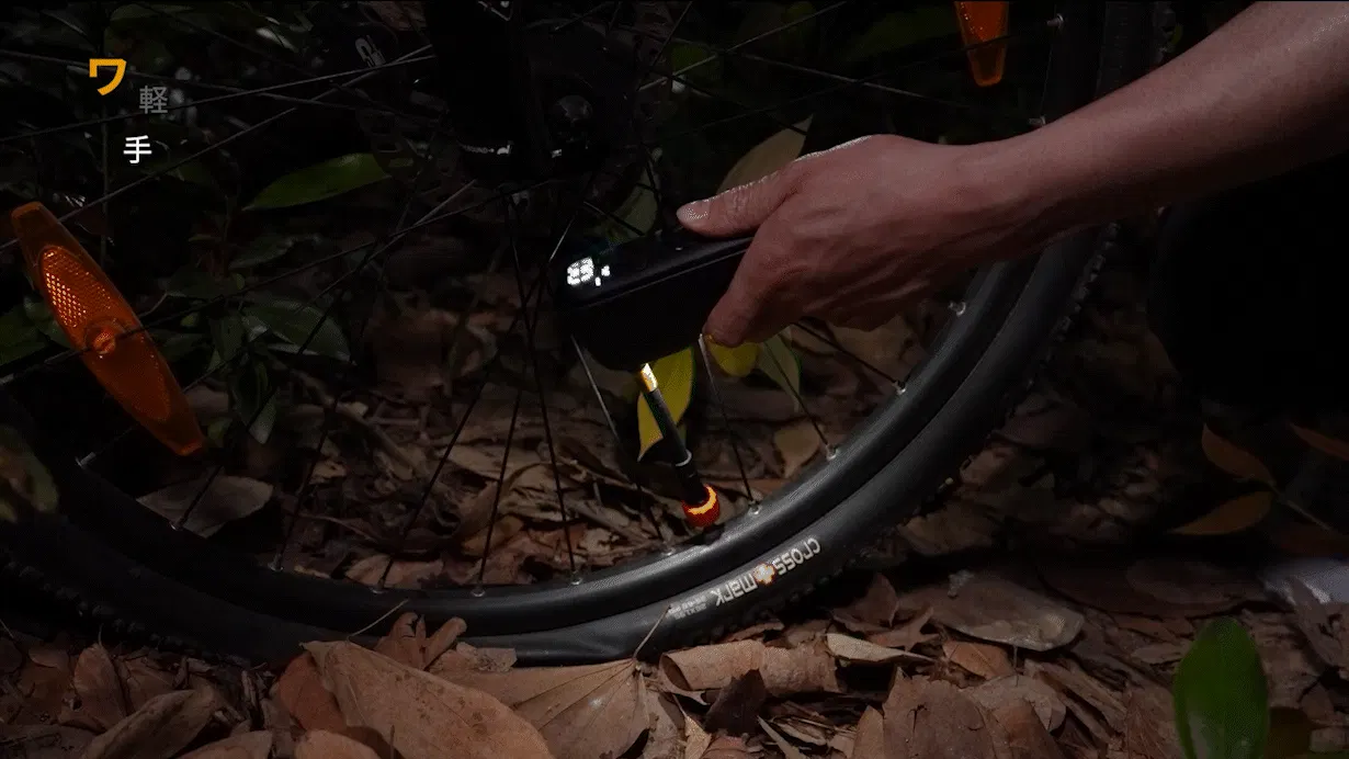 夜のパンクに備えたLEDライトも搭載!ボタンを押すだけで、LEDライトが点灯し、懐中電灯として使用できるので、暗い道や夜のサイクリングでも、タイヤのバルブが簡単に見つけられます。