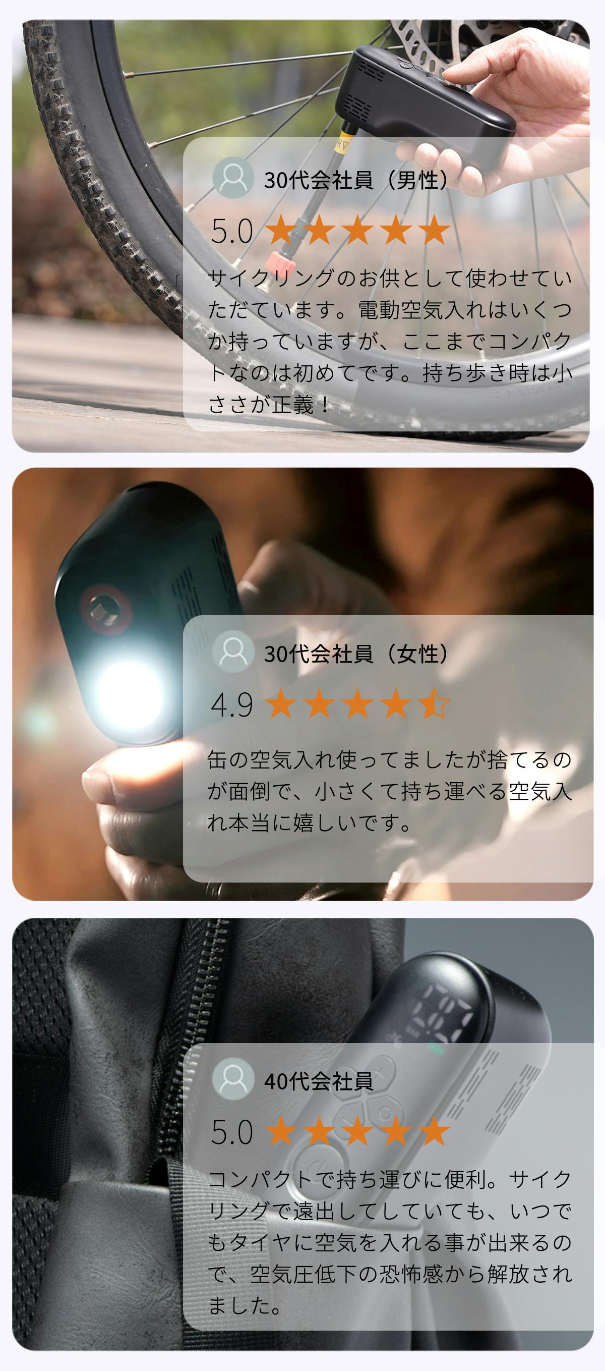 😆さらに、重さはわずか209g(スマホとほぼ同じ)、手動タイプのエアーポンプ(約1kg)の約2割しかありません!サイクリング中、長時間にわたって持ち運んでいても負担を感じさせません。