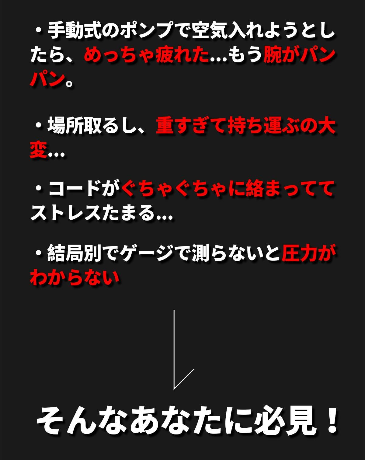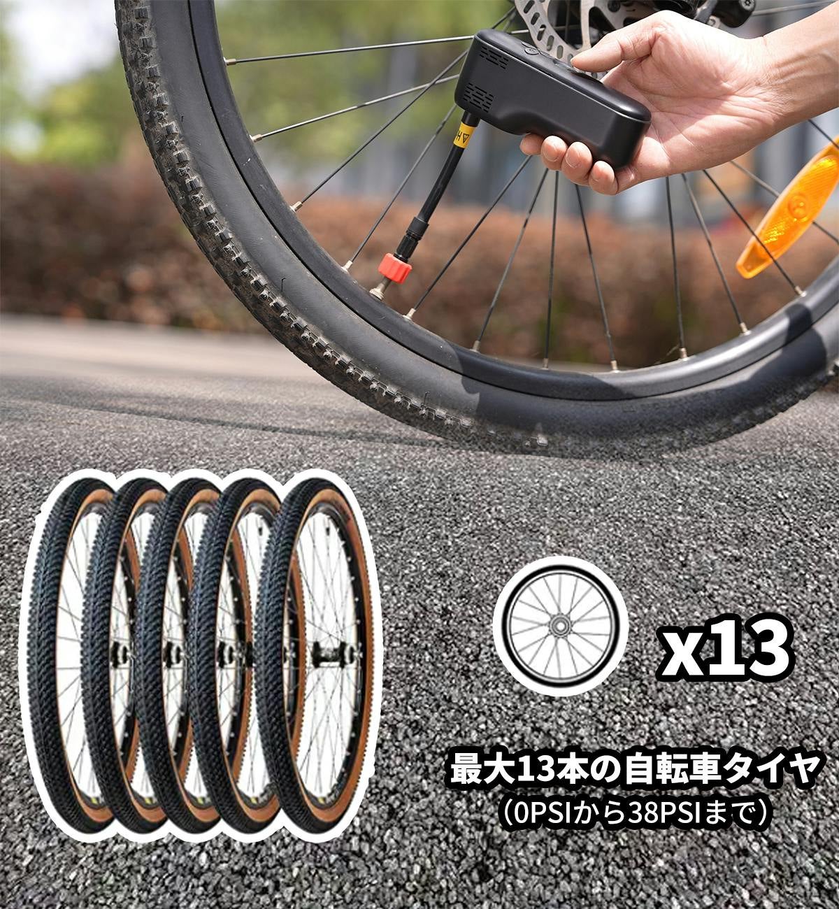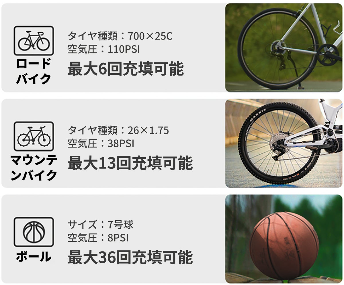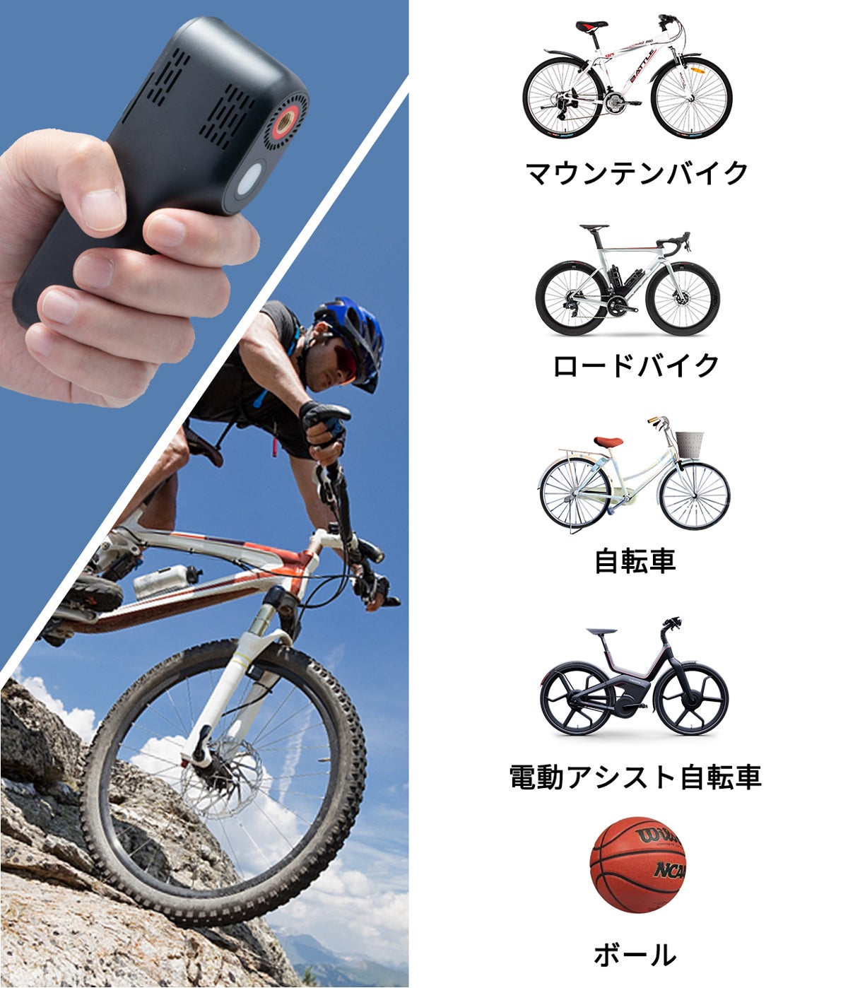 小さい見た目にふさわしくない強力なモーターが搭載されており、最大対応空気圧はなんと120PSI!ボールやマウンテンバイクなどはもちろん、高い空気圧が必要なロードバイクやオートバイにも手間をかけずに素早く空気入れ可能!