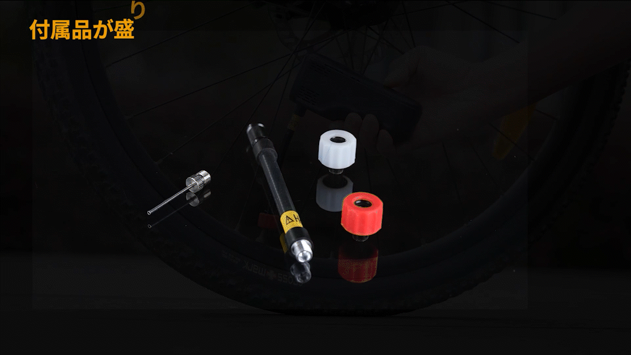 米式バルブ(米式ホース)と仏式バルブなどが付属され、ロードバイクからオートバイまで幅広い種類の二輪車に対応しています。ボール用空気針も付属され、バスケットボールやフットボールにも簡単に空気入れ可能!