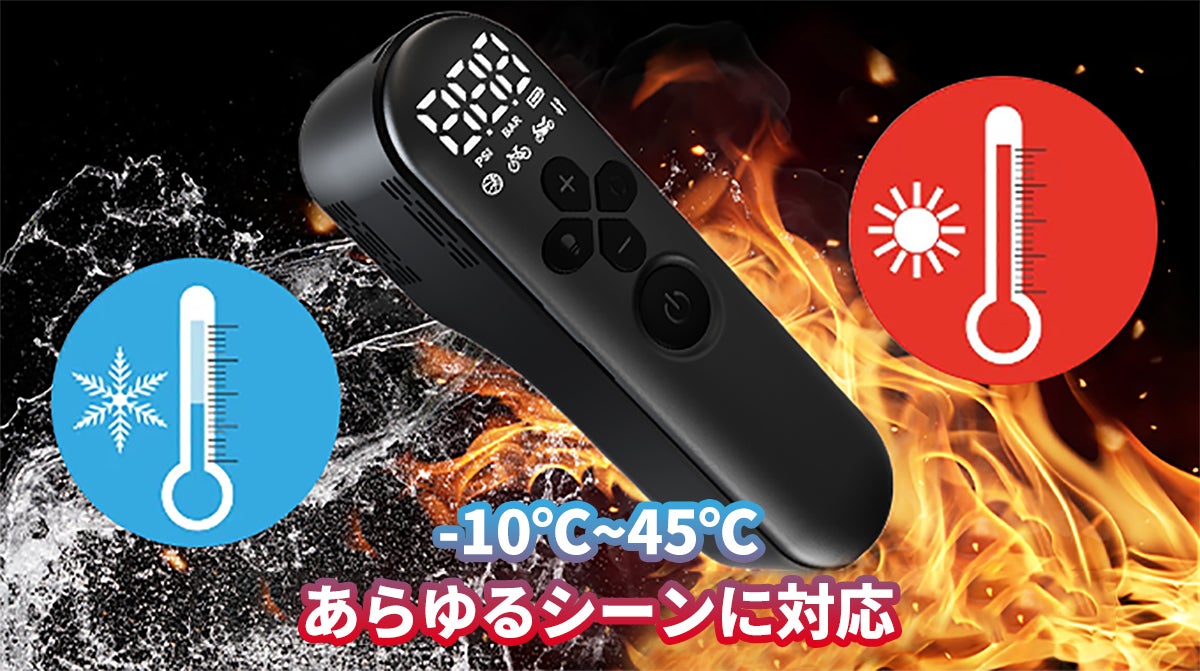 -10℃から45℃までの広い温度範囲で使用可能。猛暑日も厳寒日もこれ1つで完結。日常の通勤から真夏の大冒険まで、使い道は無限大。