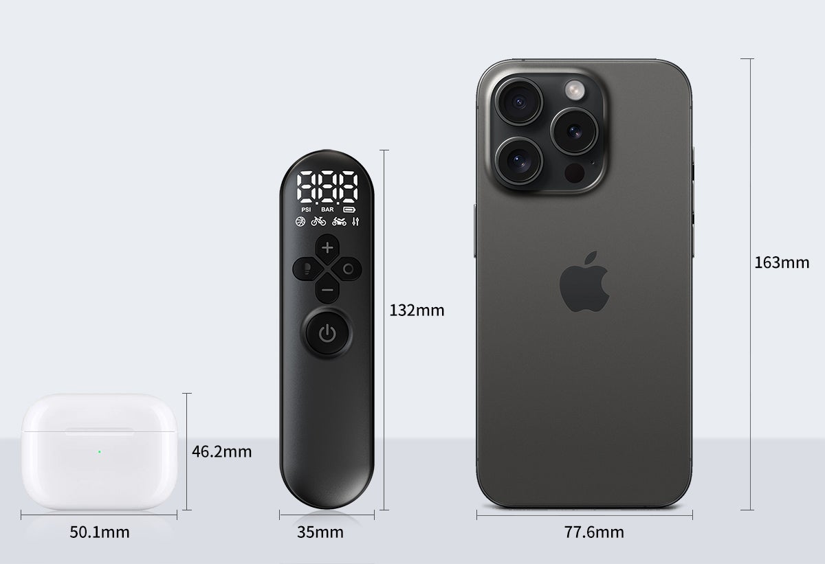 😆さらに、重さはわずか209g(スマホとほぼ同じ)、手動タイプのエアーポンプ(約1kg)の約2割しかありません!サイクリング中、長時間にわたって持ち運んでいても負担を感じさせません。