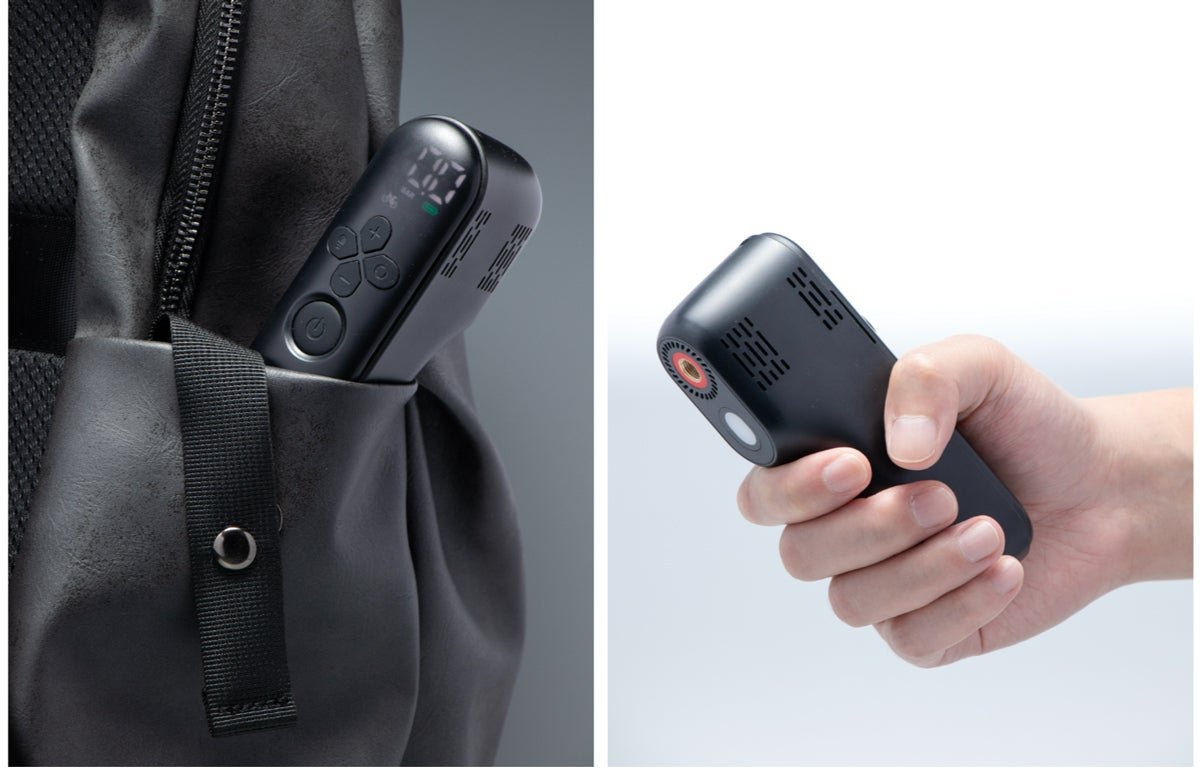 「持ち歩き時は小ささが正義!」という理念のもとで作られた「AirVot」はコンパクトさが一番の特徴です。スマホより小さいサイズで、リュックのサイドポケットはもちろん、ズボンのポケットにもかさばらずに「スー」と入ります。